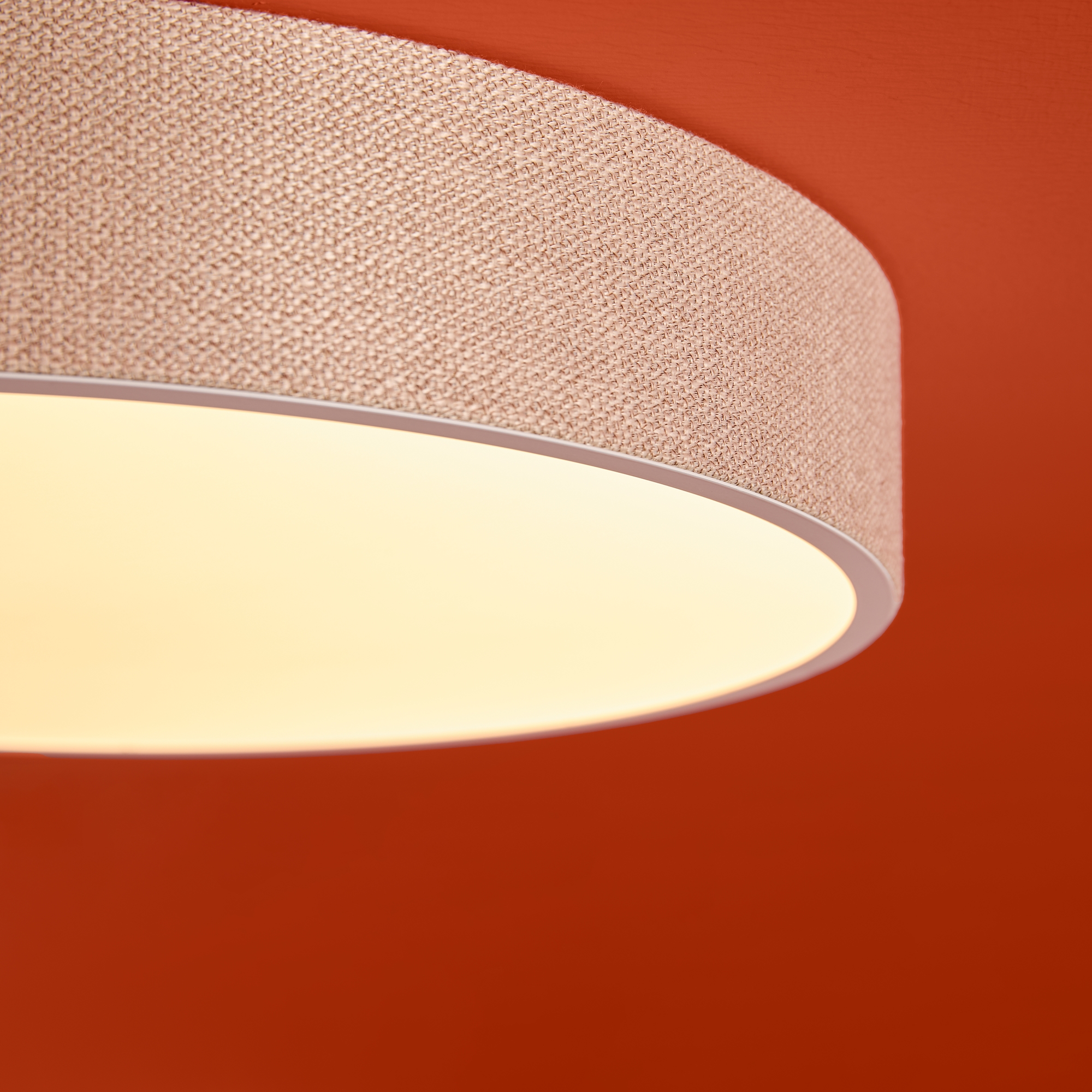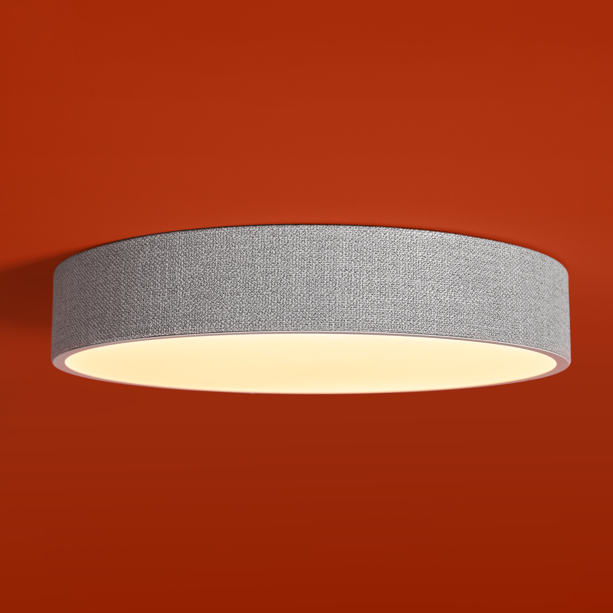 Материал арматуры — металл белого цвета. Абажур выполнен из льна в бежевом или сером цвете ткани. Светильники представлены в подвесном и потолочном исполнении и оснащены LED-источниками света с регулируемой цветовой температурой от 2700К до 4000К прямо на драйвере. Особенность серии в том , что окантовка абажура меняется с бежевого на серый и наоборот благодаря магнитным креплениям, которые входят в комплект. Также доступна версия с цоколем E14. Элегантный дизайн коллекции гармонично дополнит как классические, так и современные интерьеры.