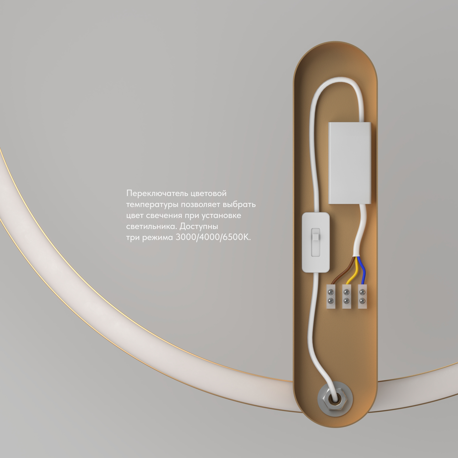 Бра серии ROUND со встроенным светодиодом мощностью 24W и с изменяемой цветовой температурой в диапазоне 3000К, 4000К, 6500К. Светит мягким отраженным светом. Расположение окружности светильника под произвольным углом к основанию при монтаже.