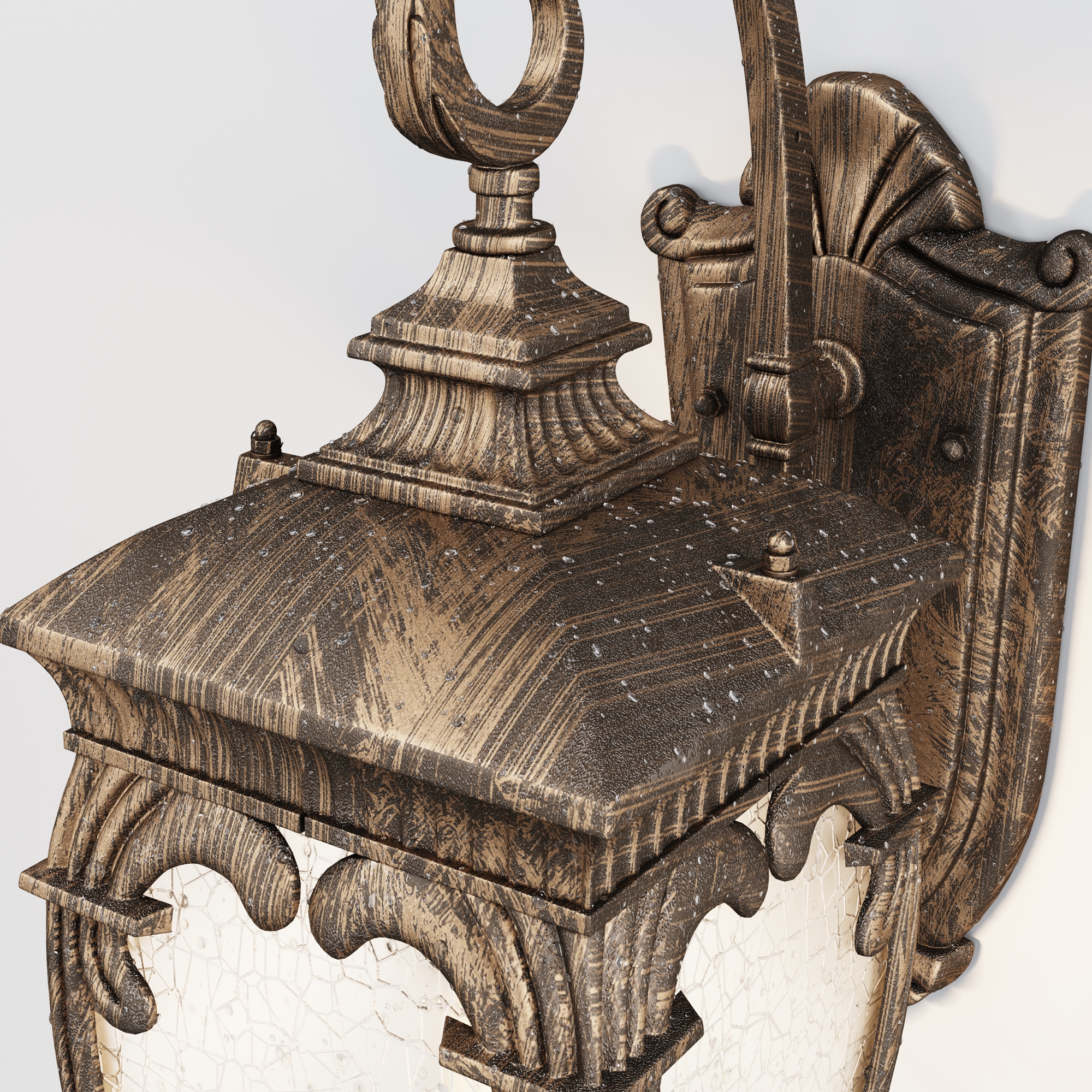Серия представлена настенными, подвесными и напольными уличными светильниками для ламп Е27. Корпус моделей выполнен из алюминия и окрашен в два оттенка на выбор: черный с золотом или античная бронза. Светильник защищен от коррозии и перепадов температур. Декоративная технология обработки стекла PULEGOSO создает эффект пузырьков воздуха внутри плафона.