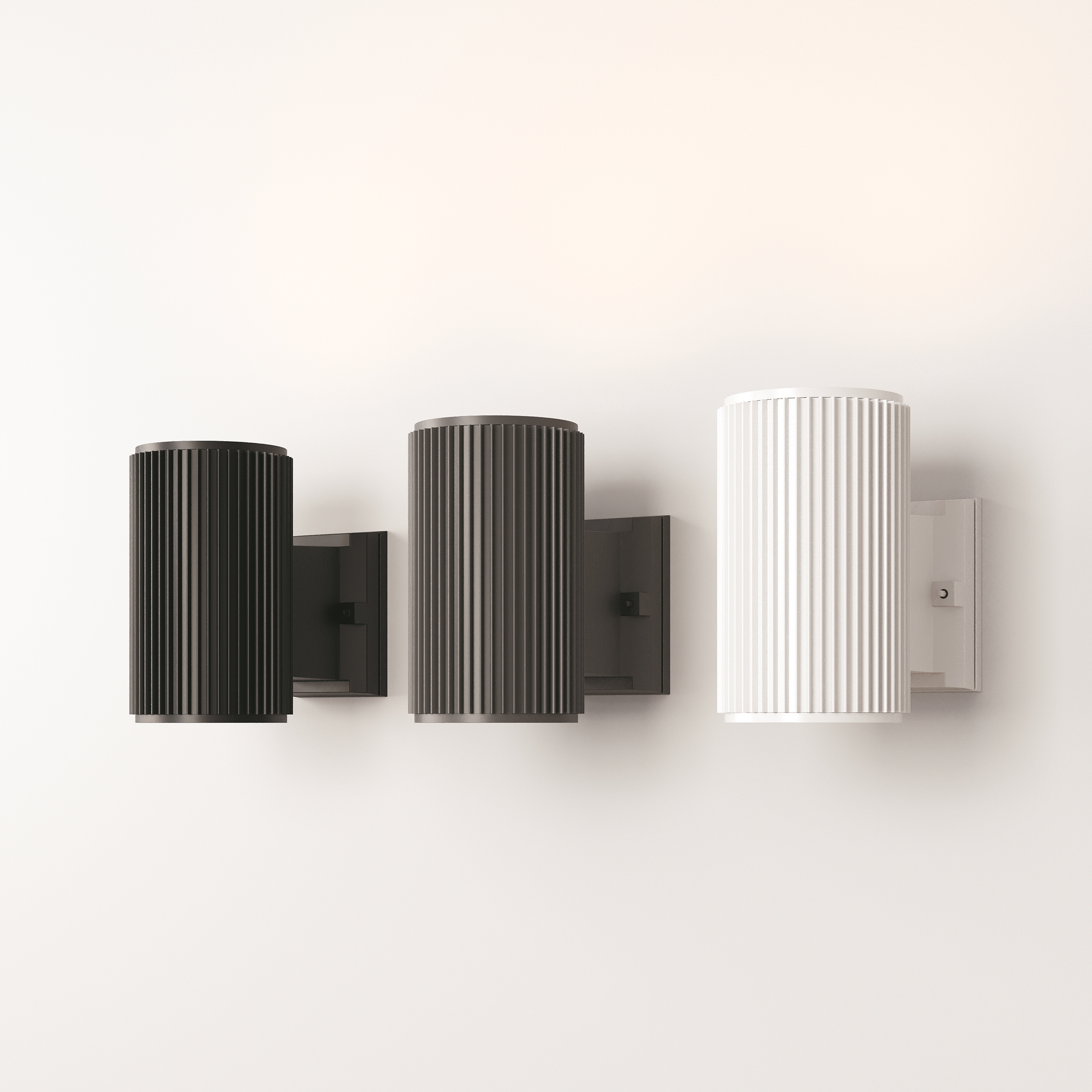 Фактурные настенные светильники для архитектурной подсветки. Металлический корпус устойчив к коррозии. IP 54 обеспечивает высокий уровень защиты от пыли и влаги. Комплектация светильников позволяет настраивать двухсторонний и однонаправленный световой поток. В серии представлены модели, рассчитанные на 1 и 2 лампы (Е27). Три оттенка на выбор: черный, серый, белый.