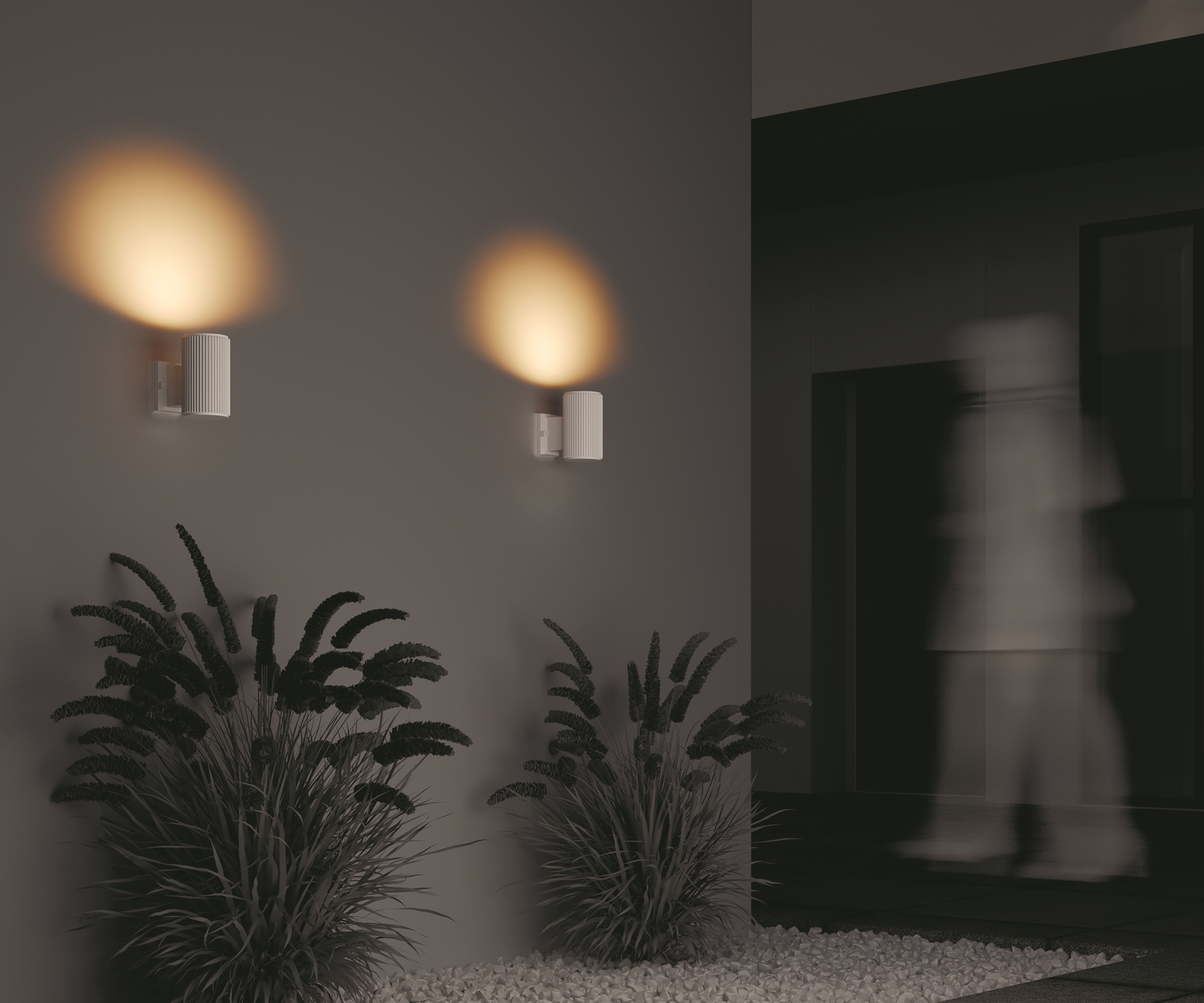 Фактурные настенные светильники для архитектурной подсветки. Металлический корпус устойчив к коррозии. IP 54 обеспечивает высокий уровень защиты от пыли и влаги. Комплектация светильников позволяет настраивать двухсторонний и однонаправленный световой поток. В серии представлены модели, рассчитанные на 1 и 2 лампы (Е27). Три оттенка на выбор: черный, серый, белый.