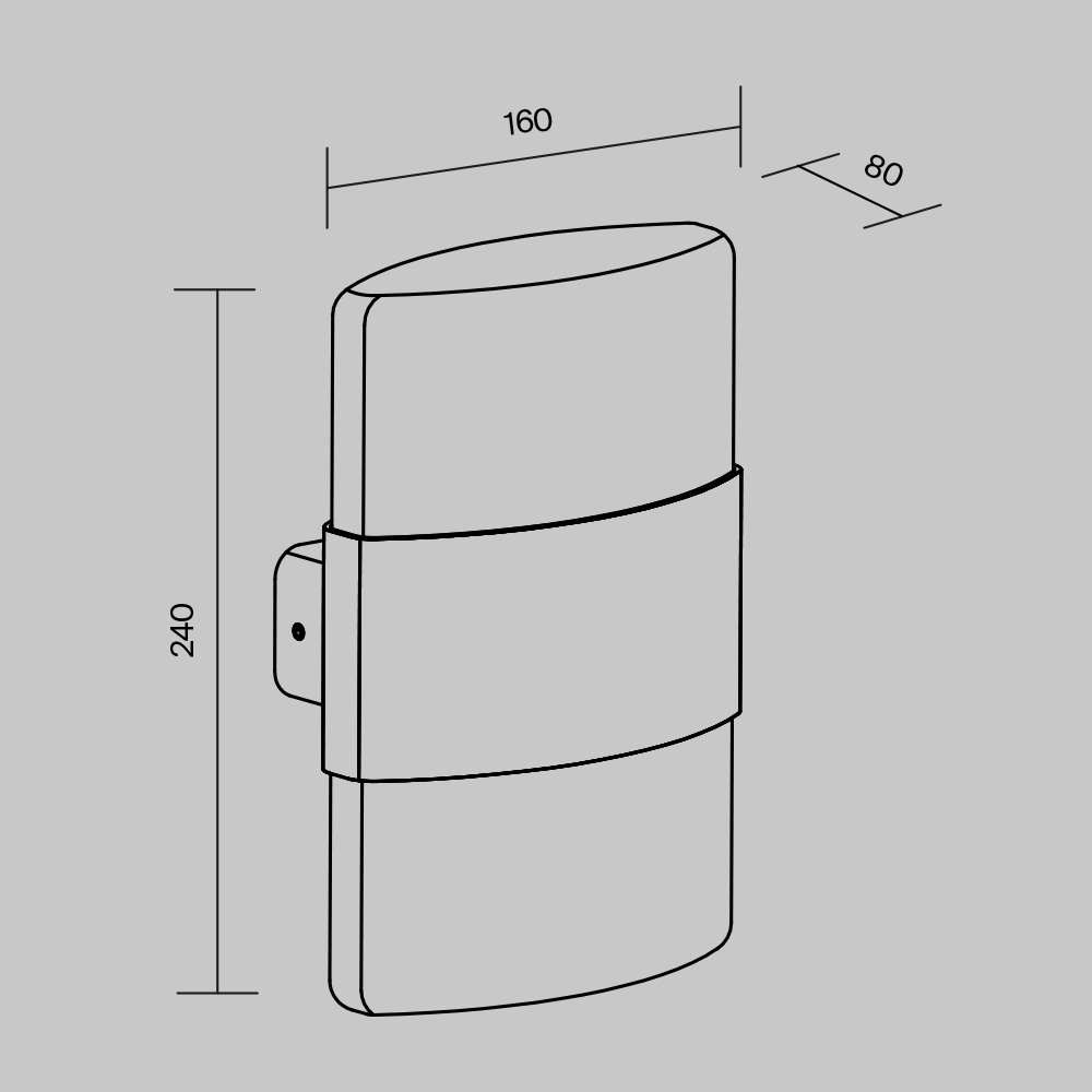 Корпус из алюминия, цвет - графит. Рассеиватель - белый матовый акрил. Равномерное мягкое рассеивание света. LED-источник света, цветовая температура - 3000К. Степень защиты - IP54.