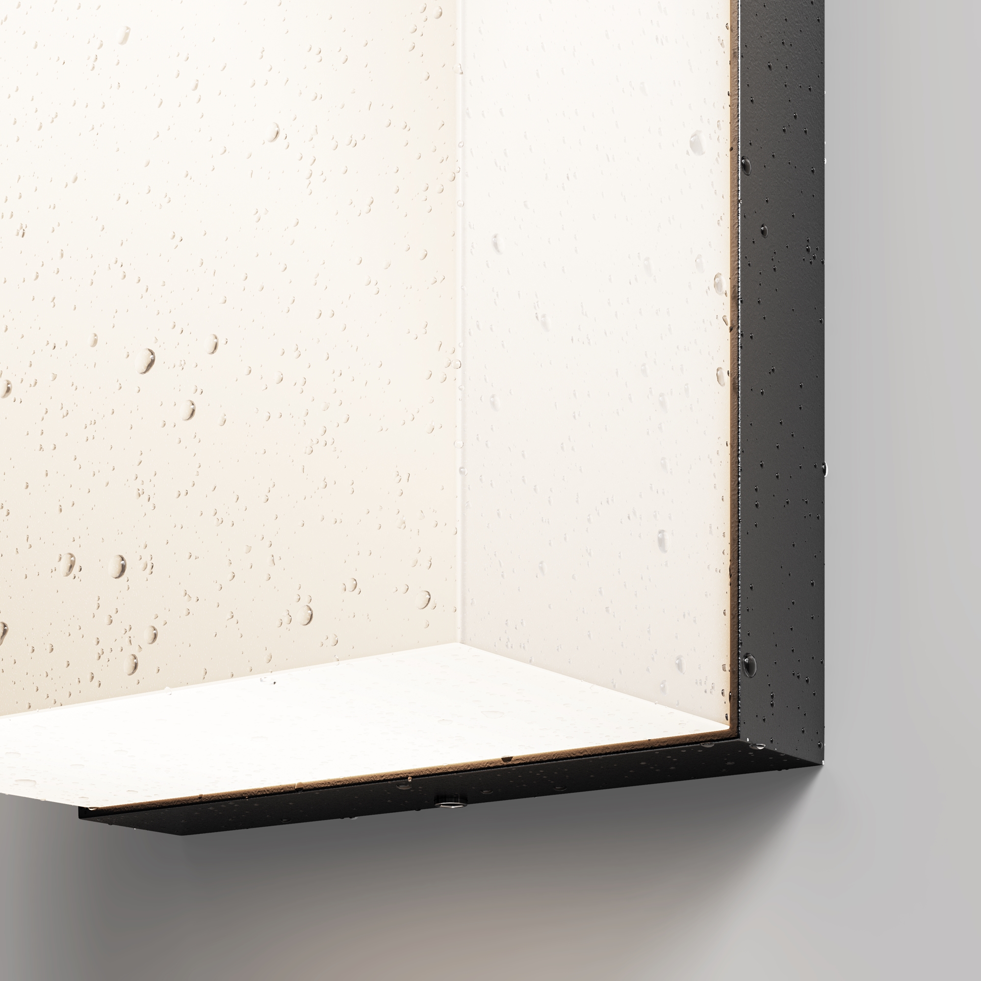 Материал корпуса - алюминий, цвет - графит. Рассеиватель из белого матового акрила. Две формы рассеивателя - квадратная и округлая. LED-источник света. Цветовая температура 3000К. Степень защиты от пыли и влаги - IP 54.