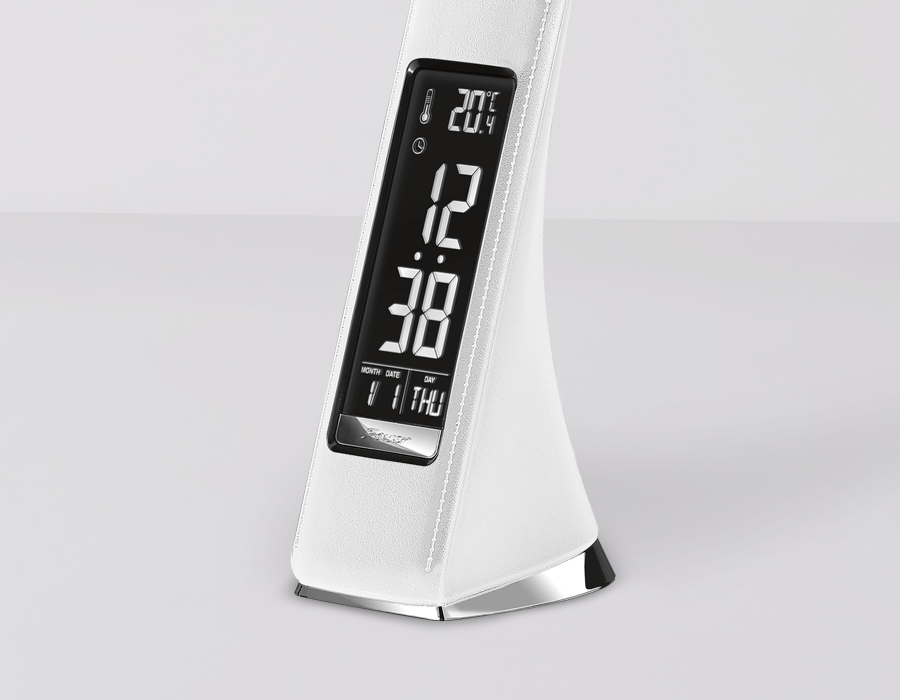 Светодиодная настольная лампа DE508 оформлена в современном стиле, белого цвета и выполнена по стандартам современных технологий. Данная модель с дисплеем, оснащена режимом диммирования, сменой цветовой температуры, что создаст комфортное освещене для любого потребителя, а так же встроенные часы, будильник, календарь и термометр.