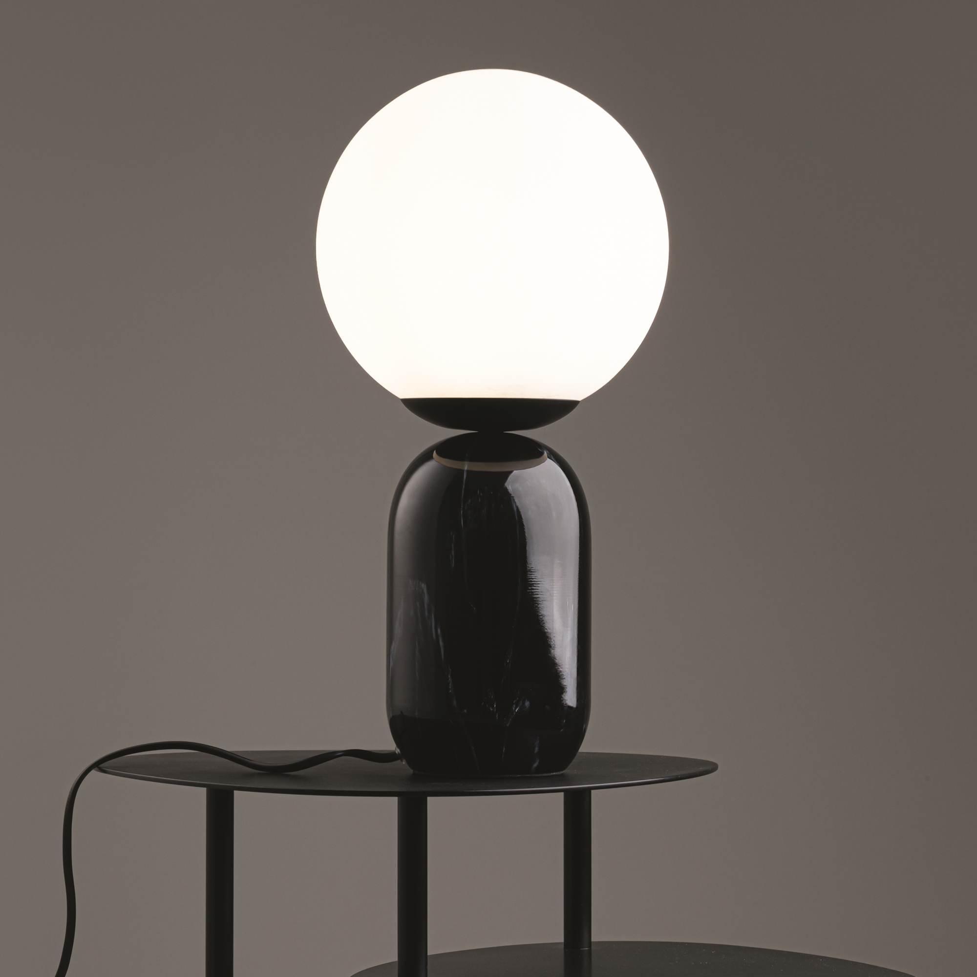 Материал арматуры — металл, цвета — латунь, черный с рисунком под мрамор. Функция Touch позволяет включать и выключать свет. Источник света — лампа с цоколем E14.