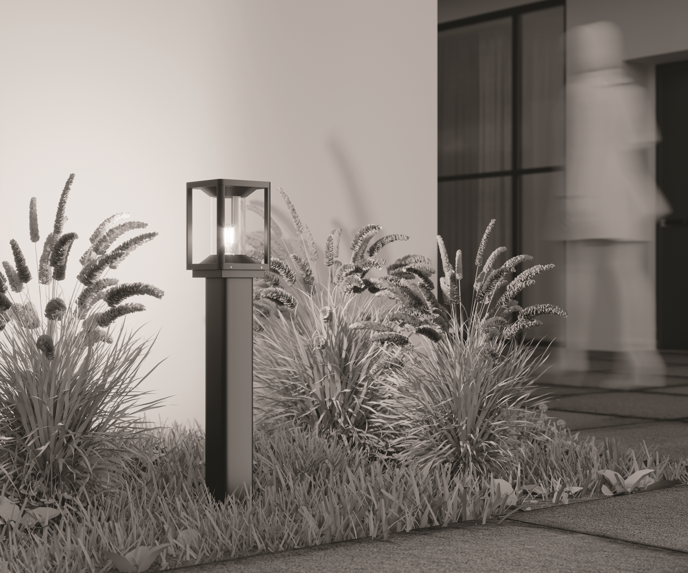 Материал корпуса — алюминий, цвет — графит. Материал рассеивателя — PC-пластик. Источник света — лампа с цоколем Е27. Наличие моделей со встроенным датчиком движения. Степень защиты от пыли и влаги - IP65.
