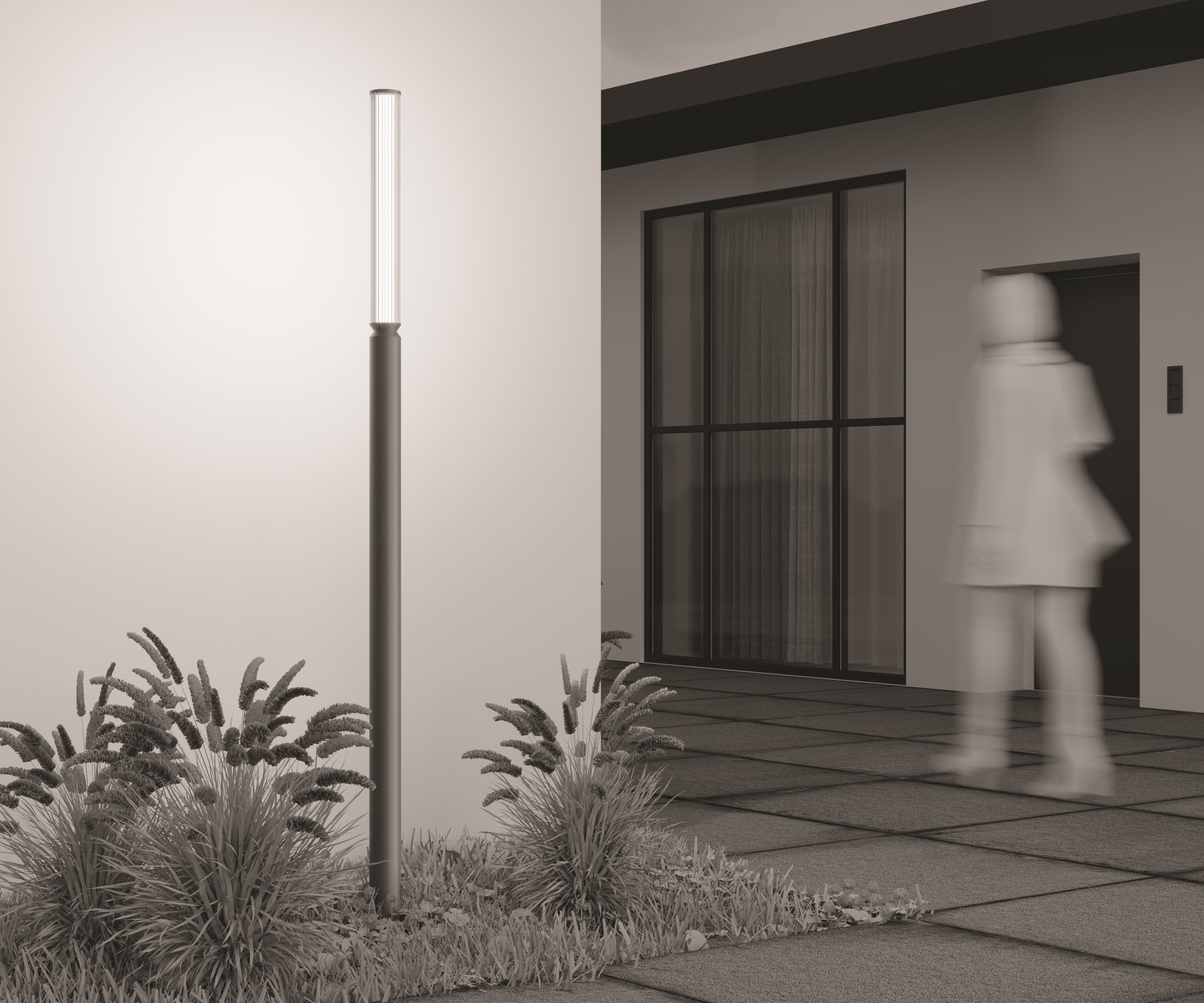 Корпус - алюминий, цвета - черный, коричневый. Двойной плафон из стекла. Внешний - прозрачный с линейным рельефным рисунком. Внутренний - белый глянцевый рассеиватель. Модели мощностью от 12Вт до 20Вт - предназначены для основного освещения. LED-источник света, цветовая температура - 3000К. Высокая степень защиты - IP65.