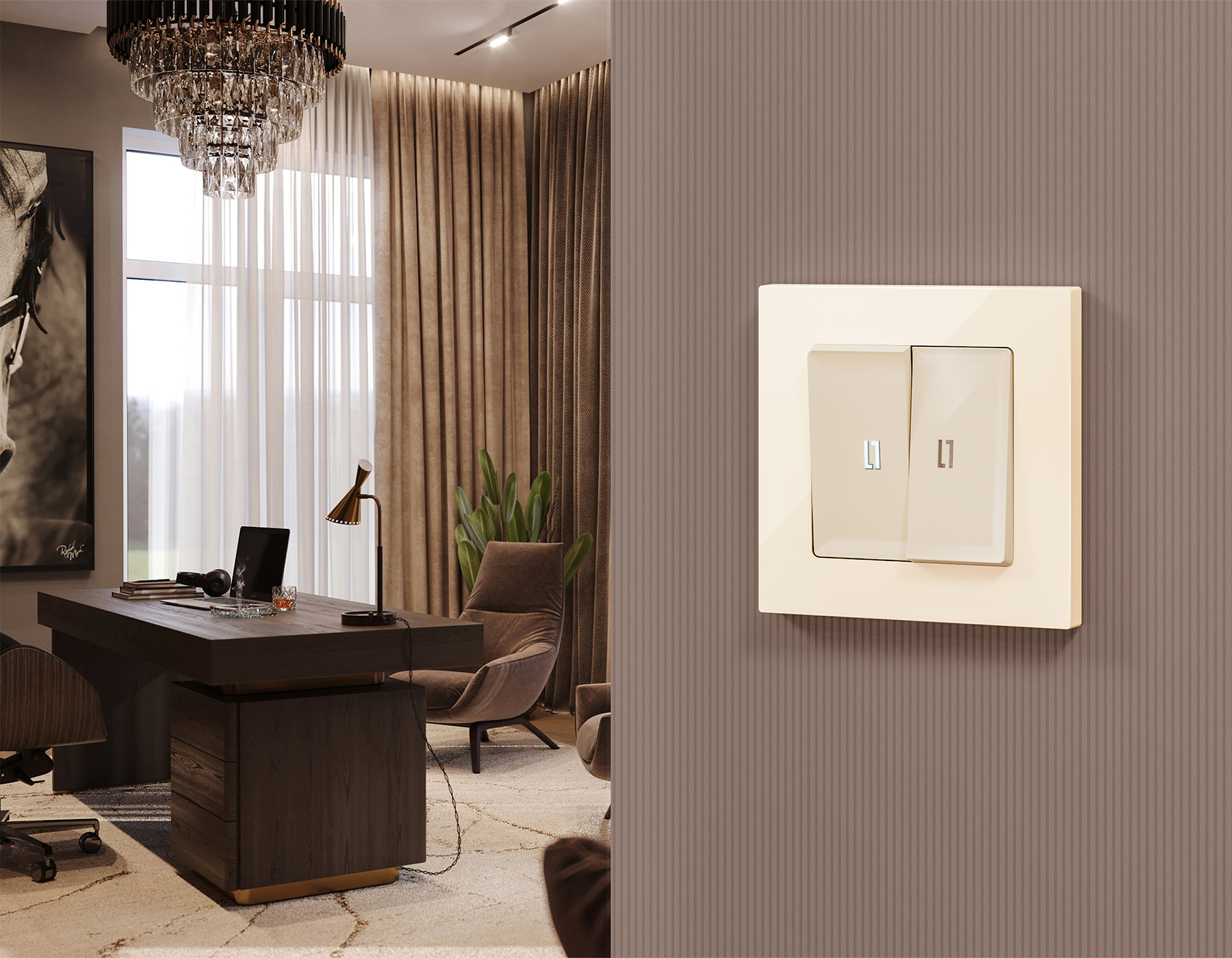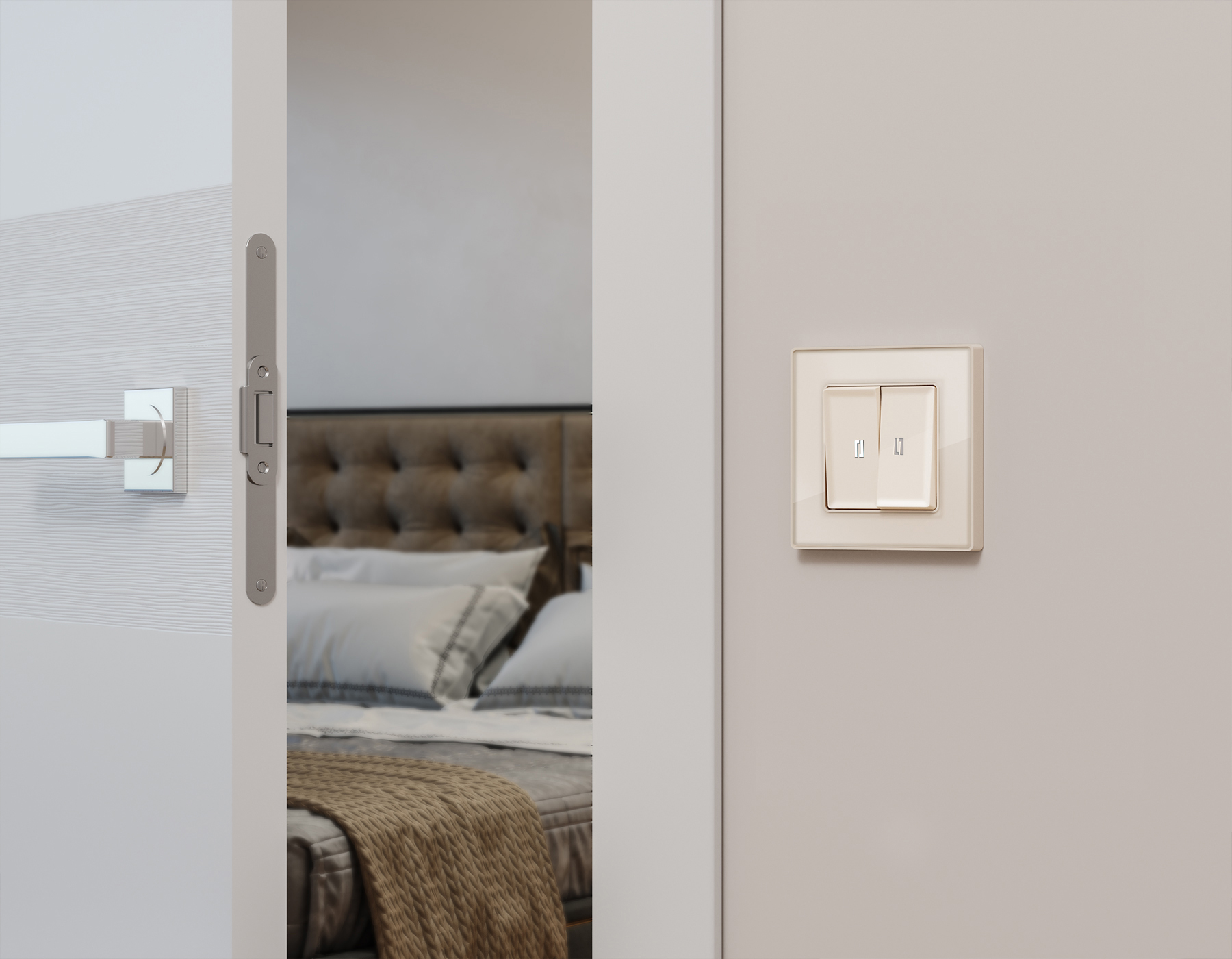 Комплект механизма 2-клавишного проходного выключателя с подсветкой 5600K ALFA MA304035 Бежевый глянец QUANT