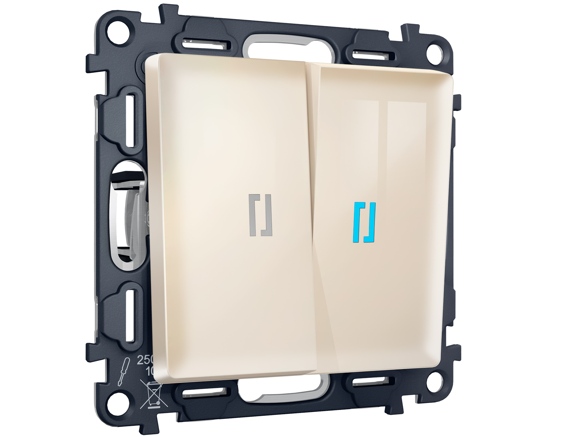 Комплект механизма 2-клавишного проходного выключателя с подсветкой 10000K ALFA MA304040 Бежевый глянец QUANT