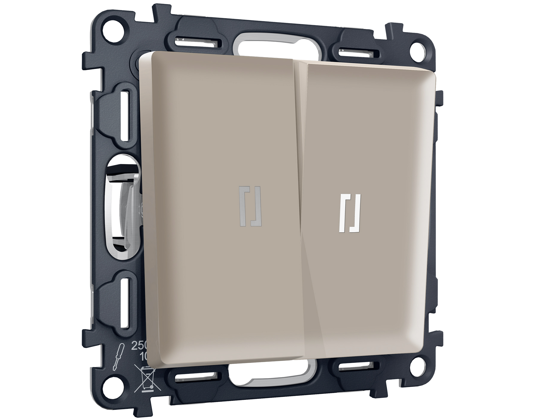 Комплект механизма 2-клавишного проходного выключателя с подсветкой 5600K ALFA MA364035 Серо-бежевый матовый QUANT
