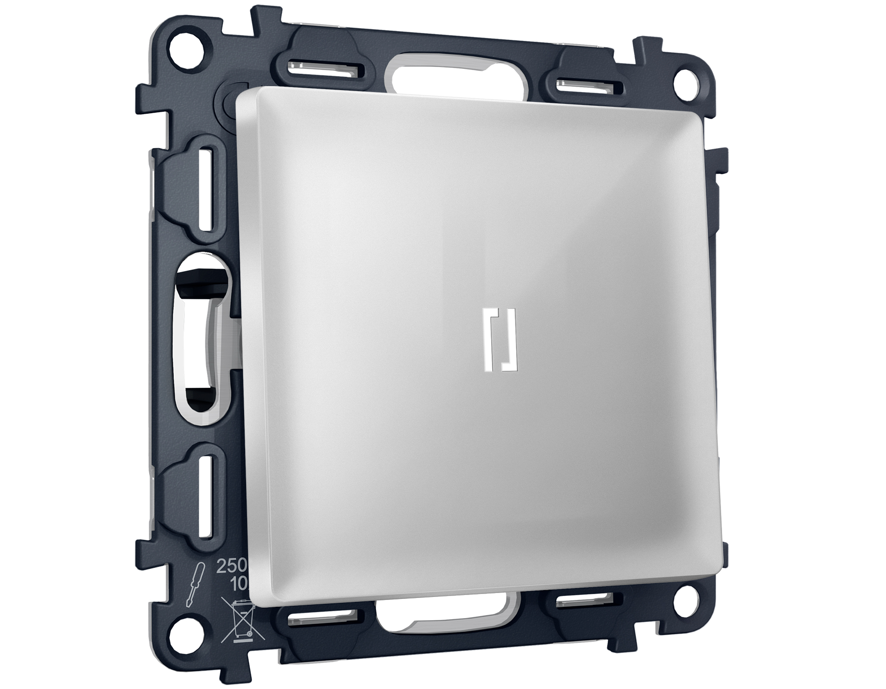 Комплект механизма 1-клавишного проходного выключателя с подсветкой 5600K ALFA MA402035 Серебро глянец QUANT