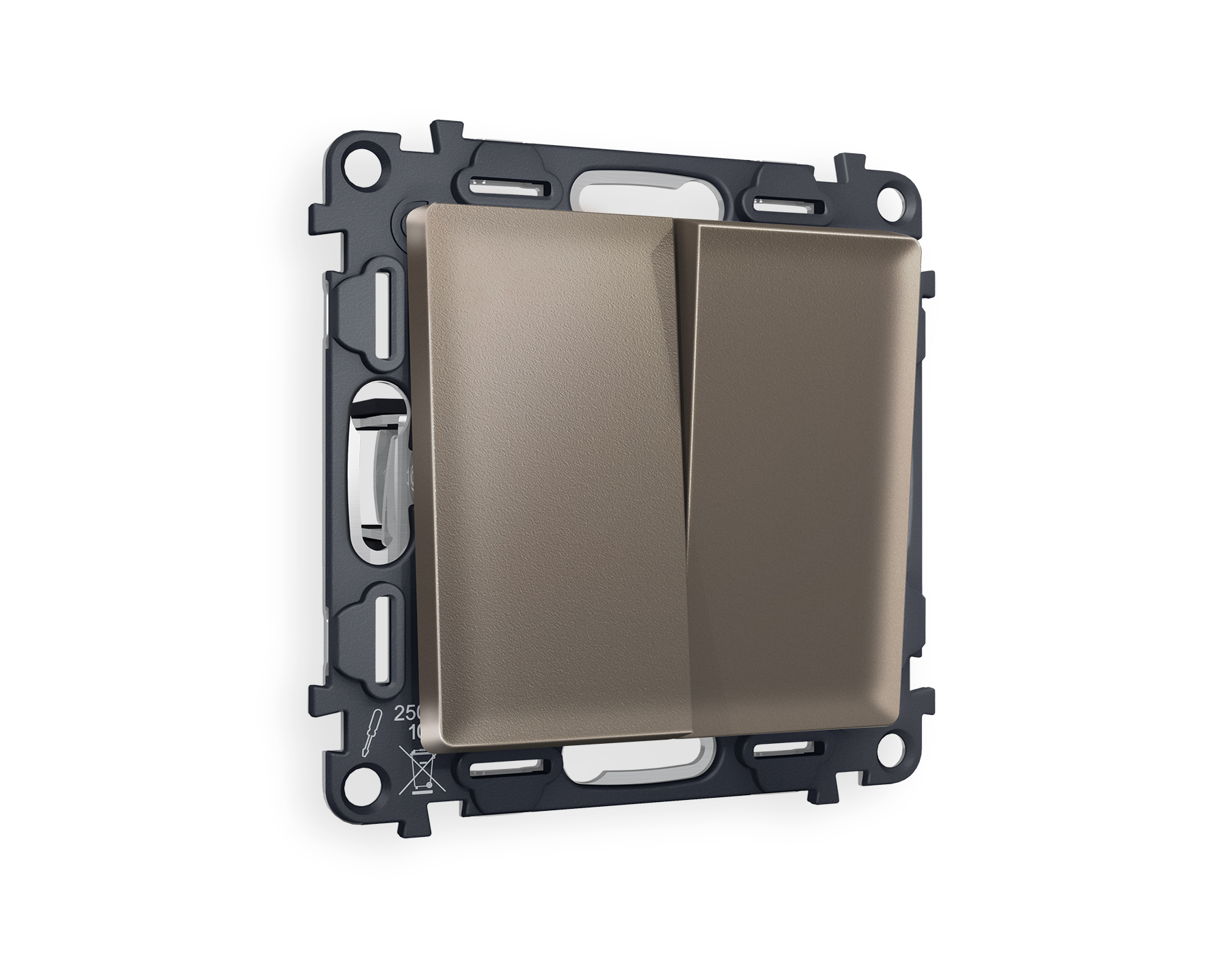 Комплект механизма 2-клавишного перекрестного выключателя 10A-250V ALFA MA633030 Темная бронза матовый QUANT
