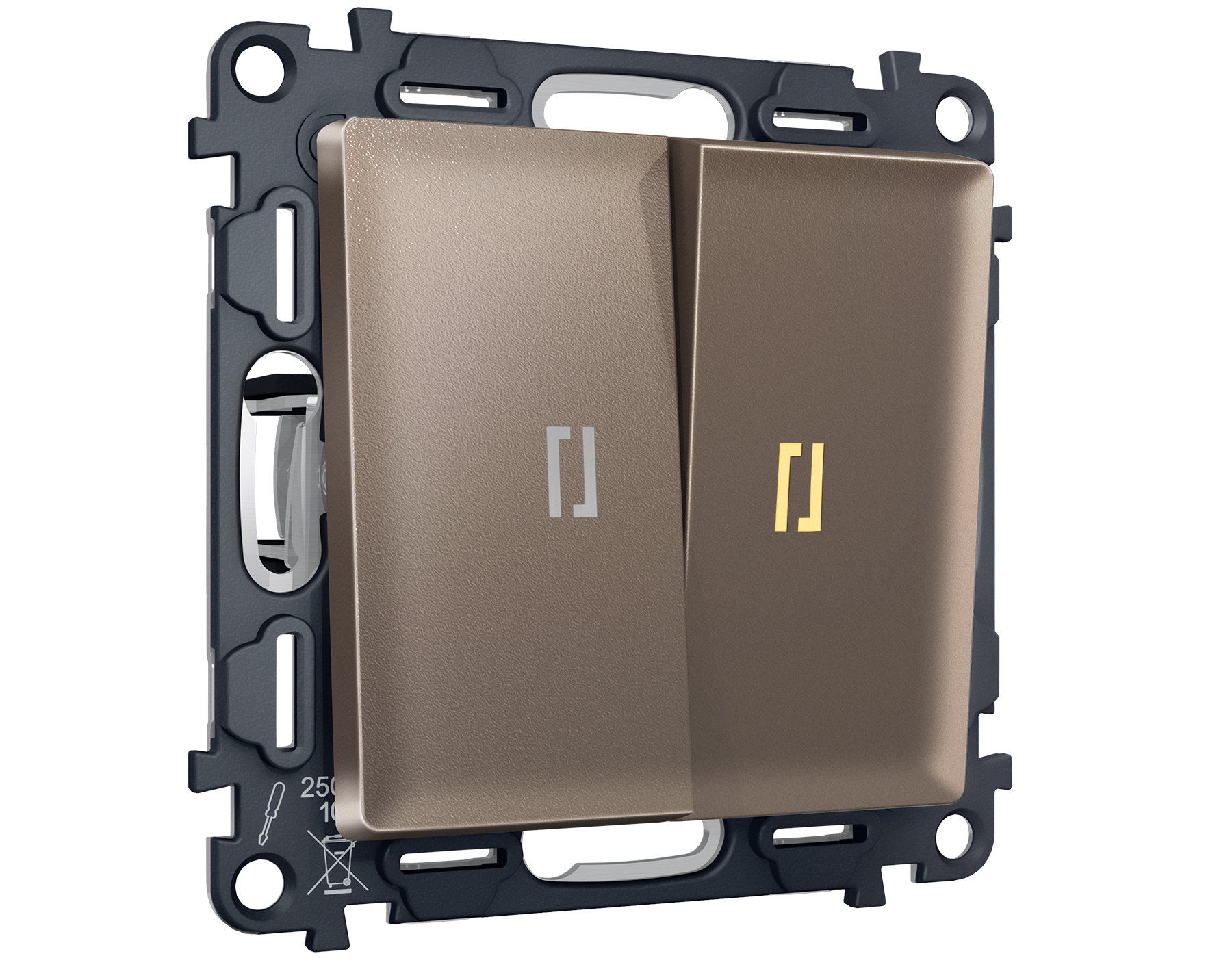 Комплект механизма 2-клавишного проходного выключателя с подсветкой 3200K ALFA MA634030 Темная бронза матовый QUANT
