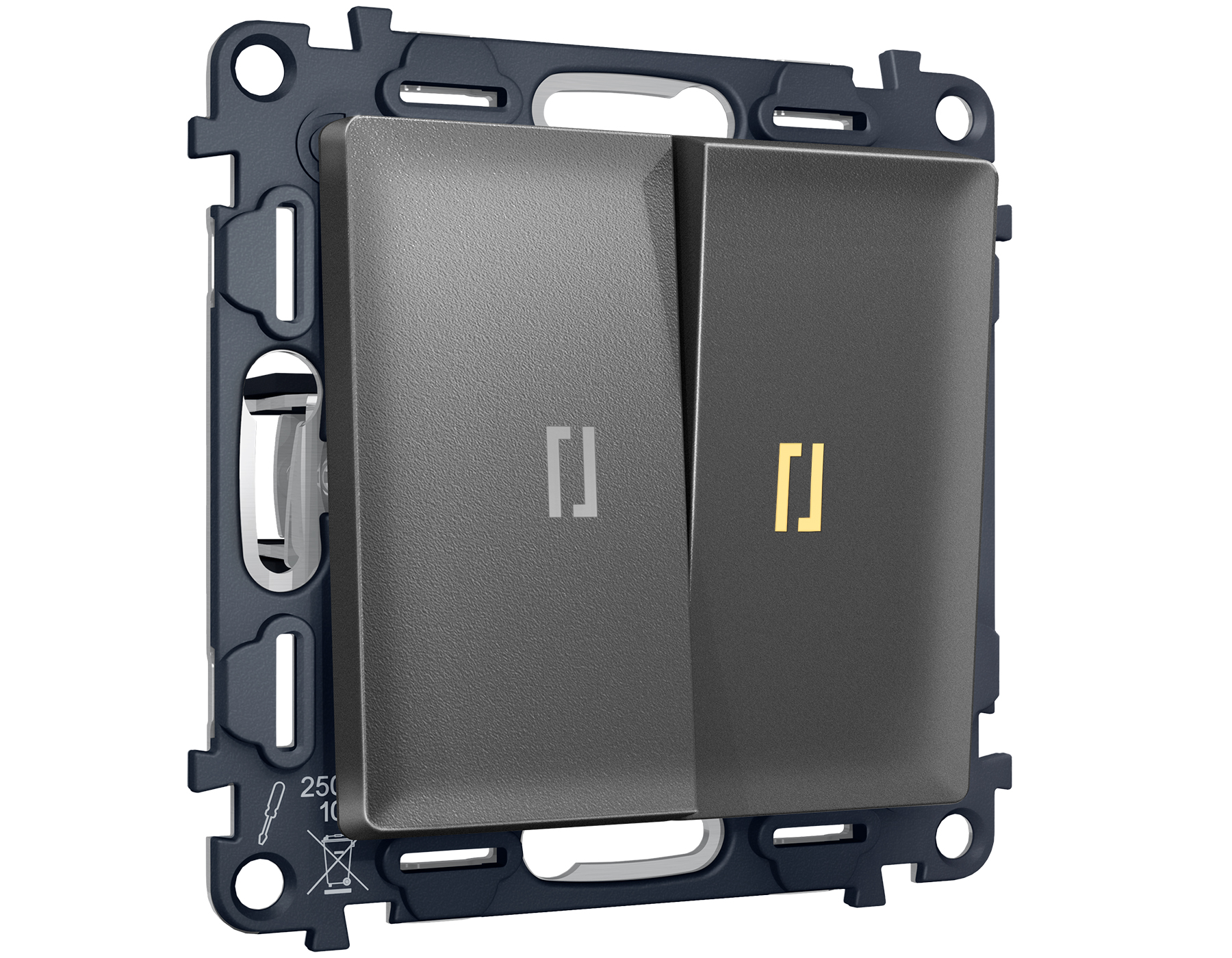 Комплект механизма 2-клавишного проходного выключателя с подсветкой 3200K ALFA MA654030 Антрацит серый QUANT