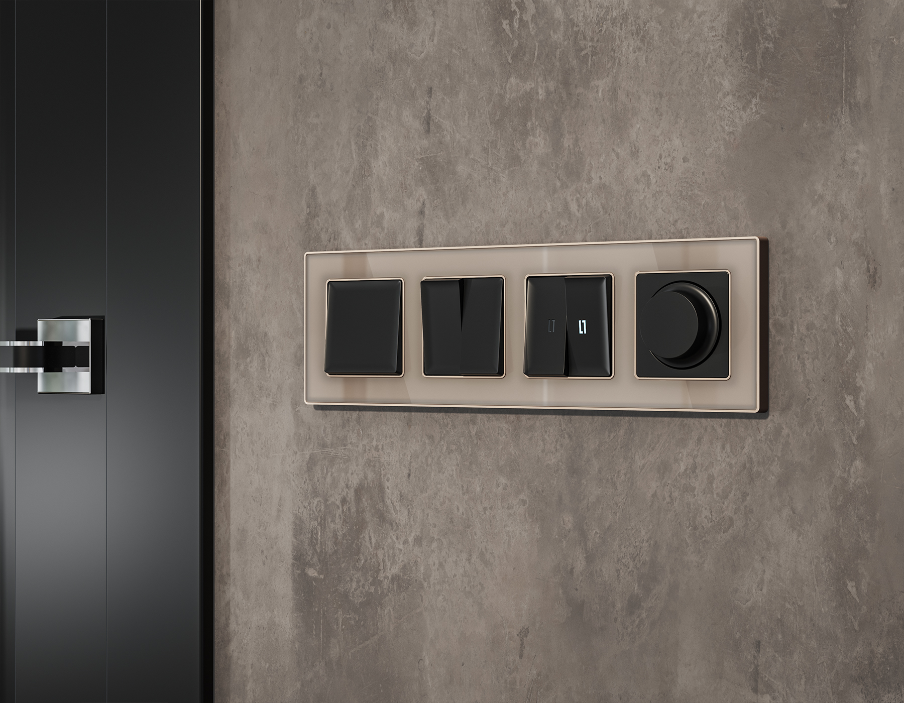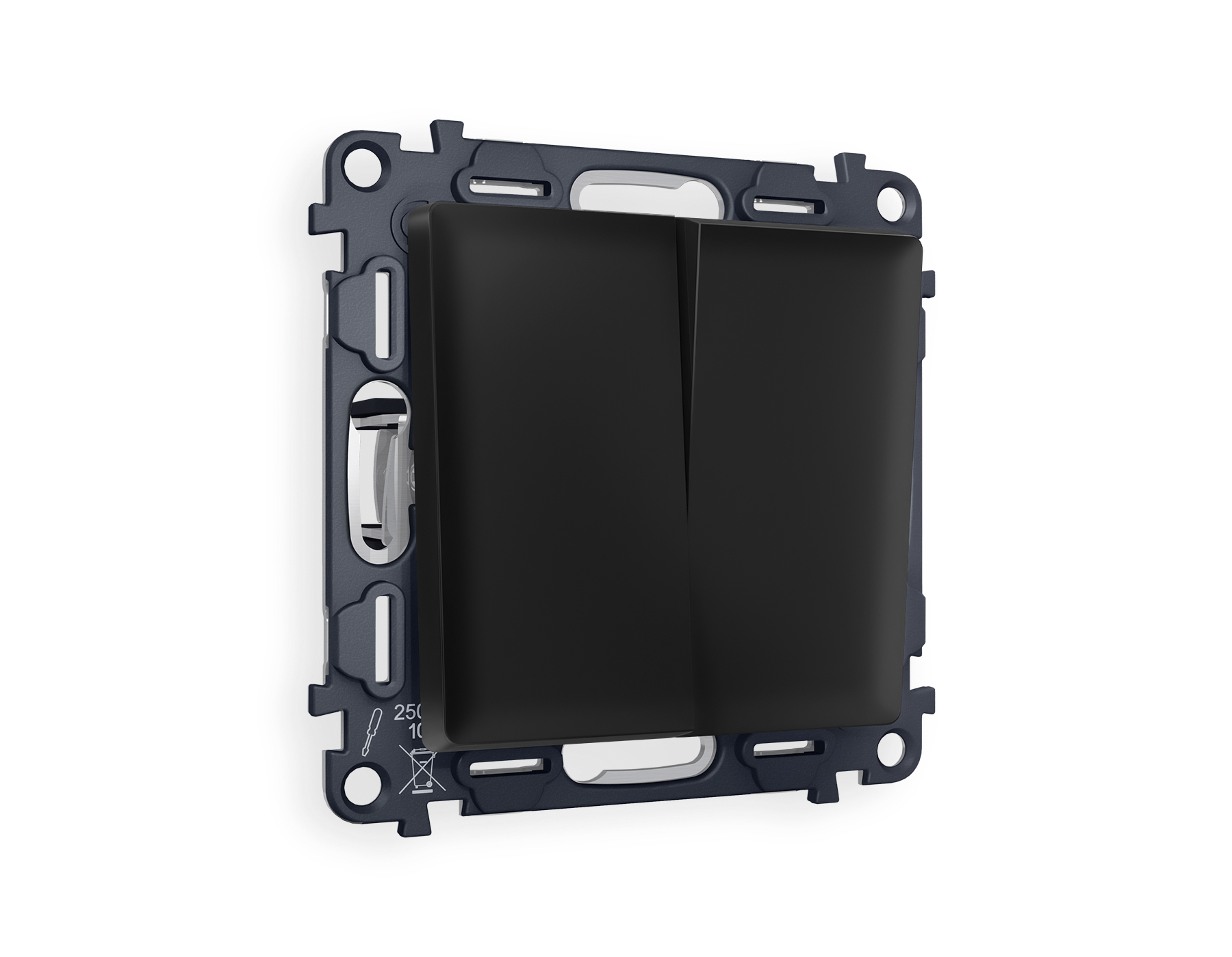 Комплект механизма 2-клавишного перекрестного выключателя 10A-250V ALFA MA803030 Черный матовый QUANT
