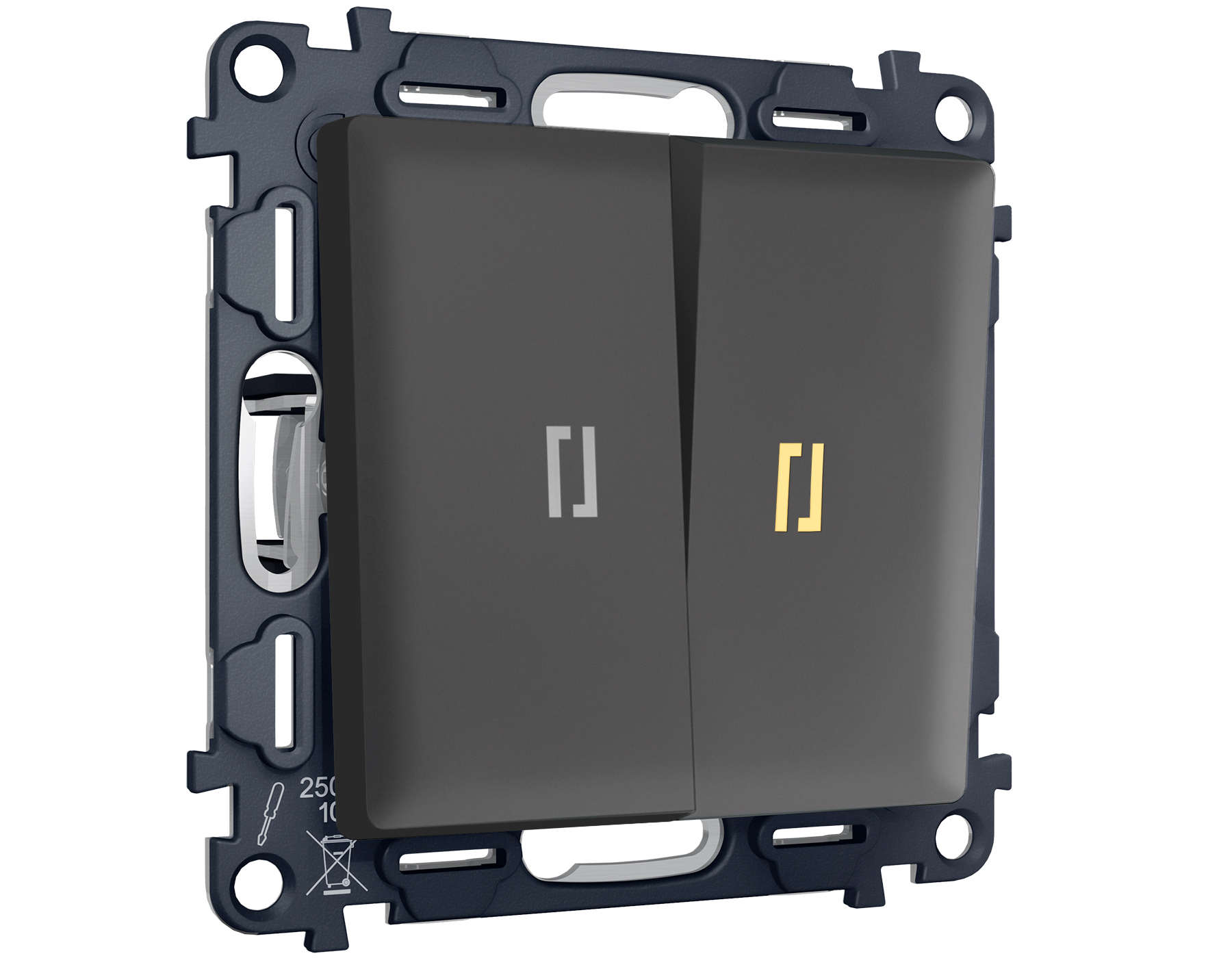 Комплект механизма 2-клавишного проходного выключателя с подсветкой 3200K ALFA MA904030 Графит мягкое касание QUANT