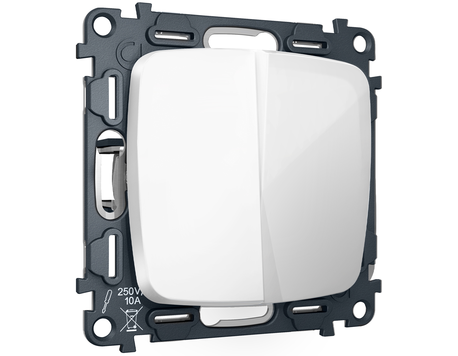 Комплект механизма 2-клавишного проходного выключателя OMEGA MO103020 Белый глянец QUANT
