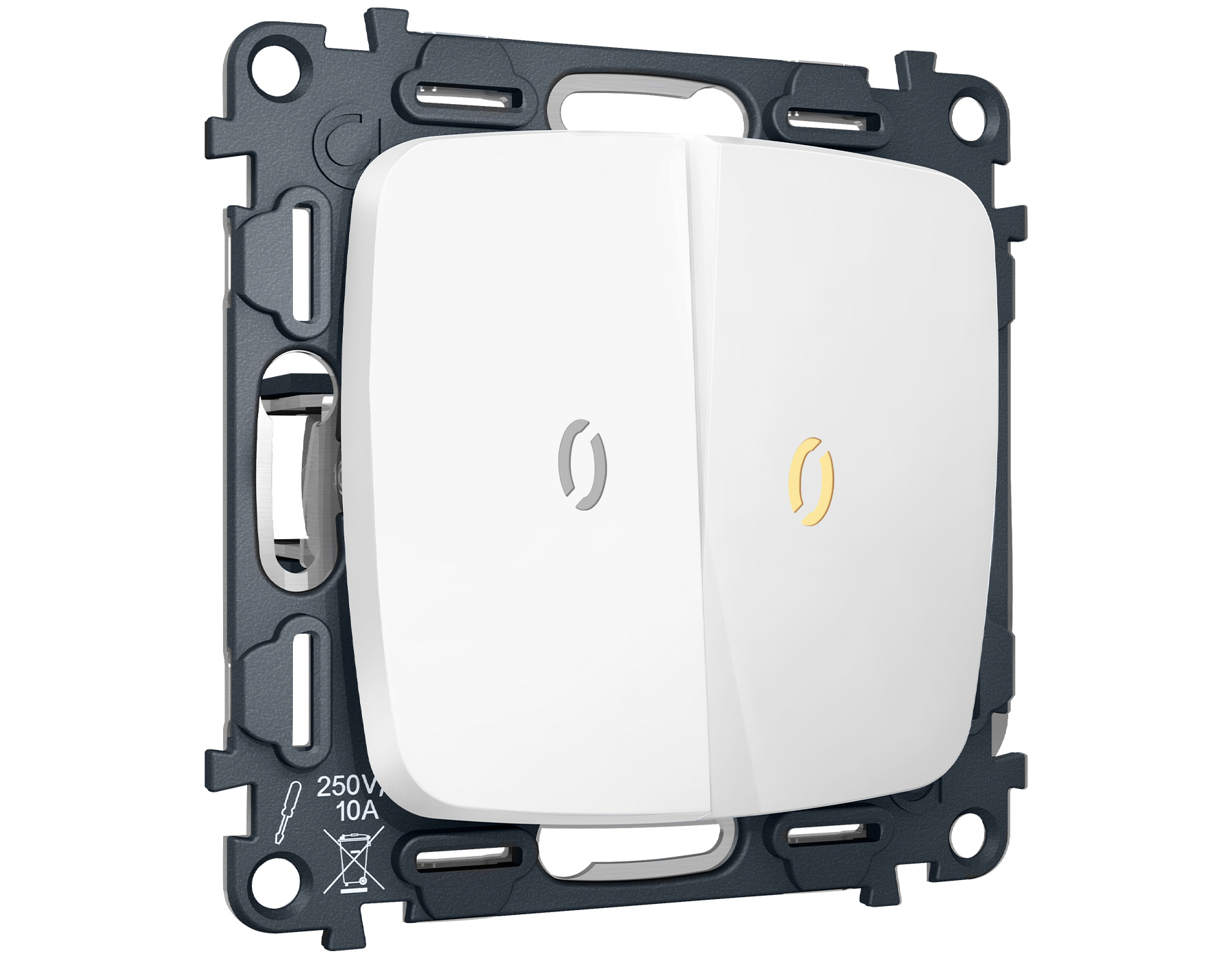 Комплект механизма 2-клавишного проходного выключателя с подсветкой 3200K OMEGA MO124030 Белый матовый QUANT