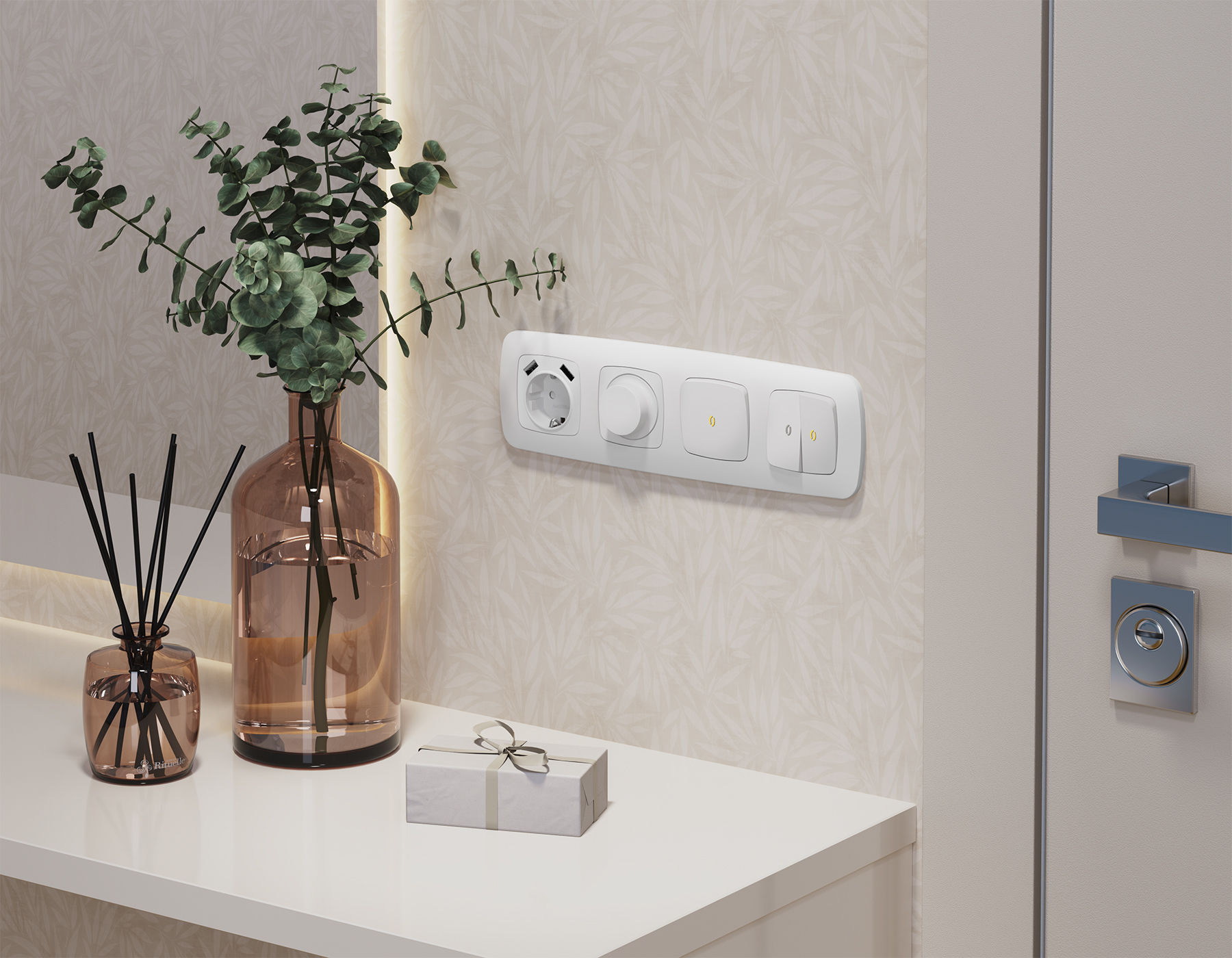 Многогранный ассортимент Ambrella Volt включает в себя механизмы, лицевые панели и рамки, а также комплекты, доступные в различных цветовых решениях. Продукция представлена в модульном исполнении, что позволяет гибко настраивать внешнийвид и функциональность. Вам будет легко заменить лицевую панель, рамку или механизм, найдя идеальное сочетание цветов.