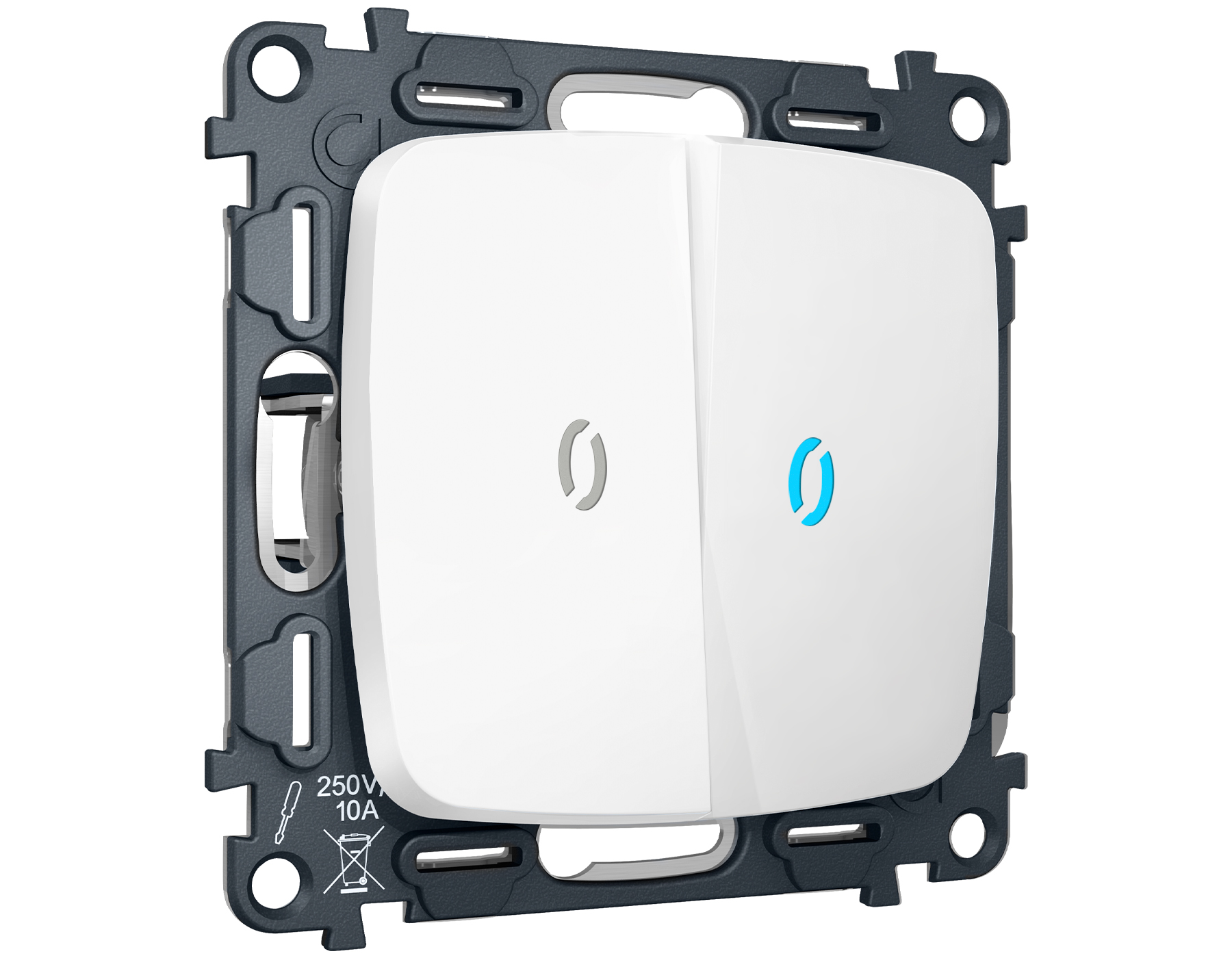 Комплект механизма 2-клавишного проходного выключателя с подсветкой 10000K OMEGA MO124040 Белый матовый QUANT