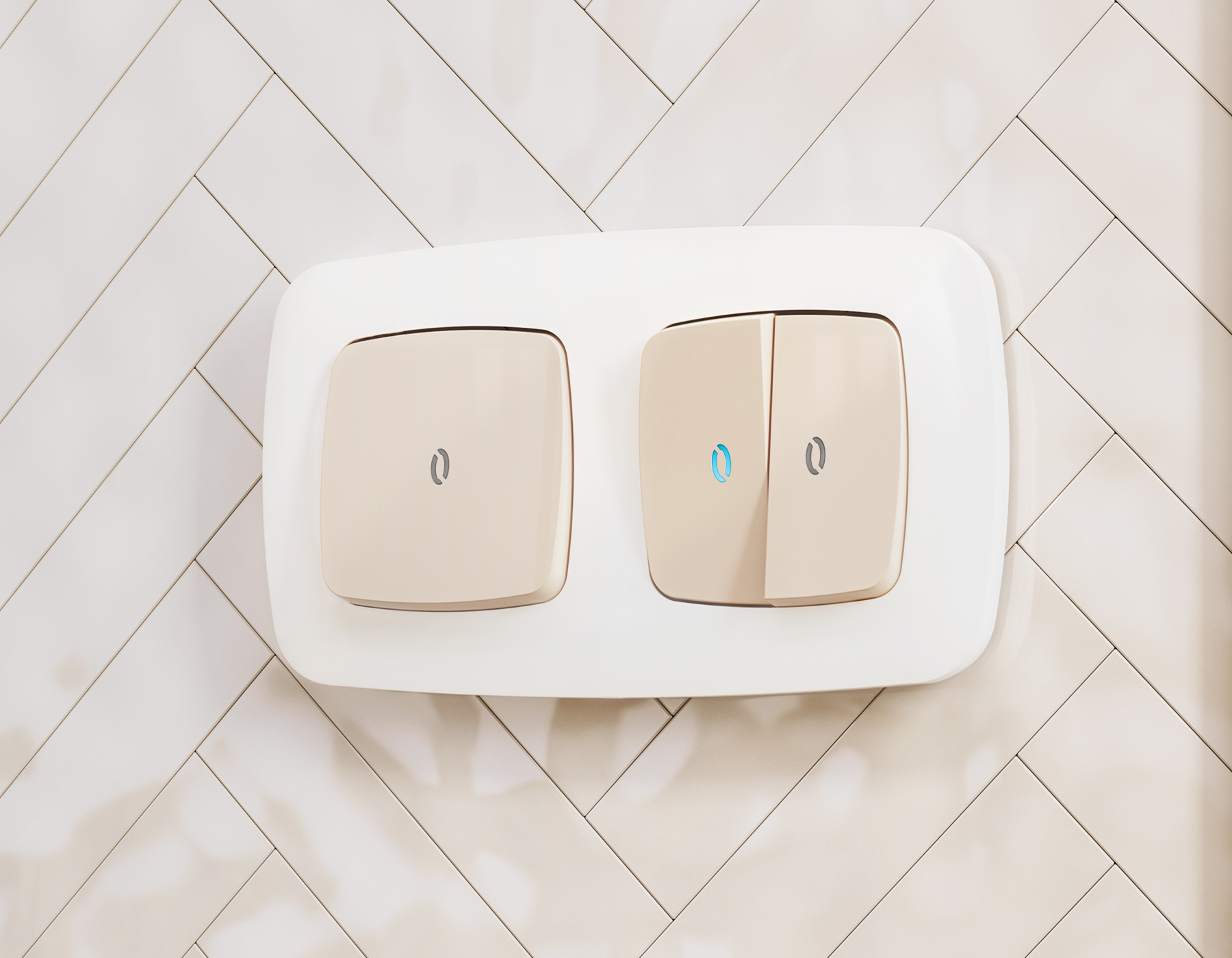 Комплект механизма 1-клавишного проходного выключателя с подсветкой 10000K OMEGA MO302040 Бежевый глянец QUANT