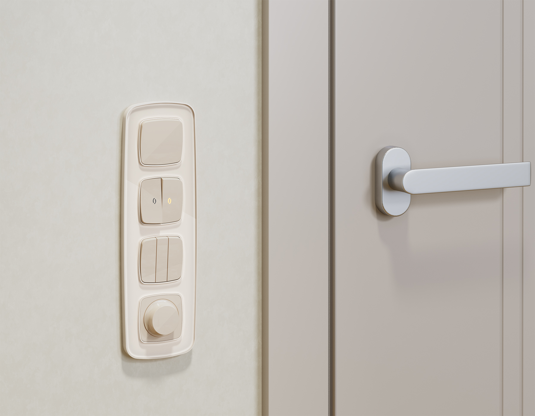 Комплект механизма 2-клавишного проходного выключателя с подсветкой 3200K OMEGA MO304030 Бежевый глянец QUANT