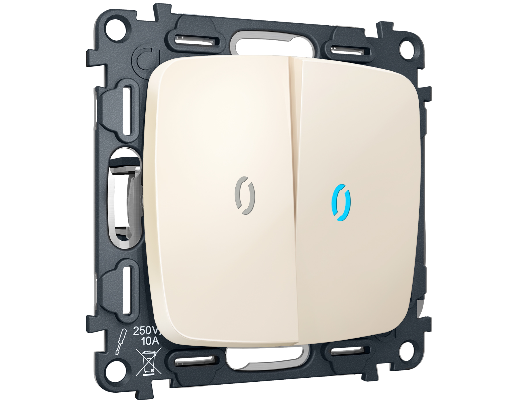 Комплект механизма 2-клавишного проходного выключателя с подсветкой 10000K OMEGA MO324040 Бежевый матовый QUANT