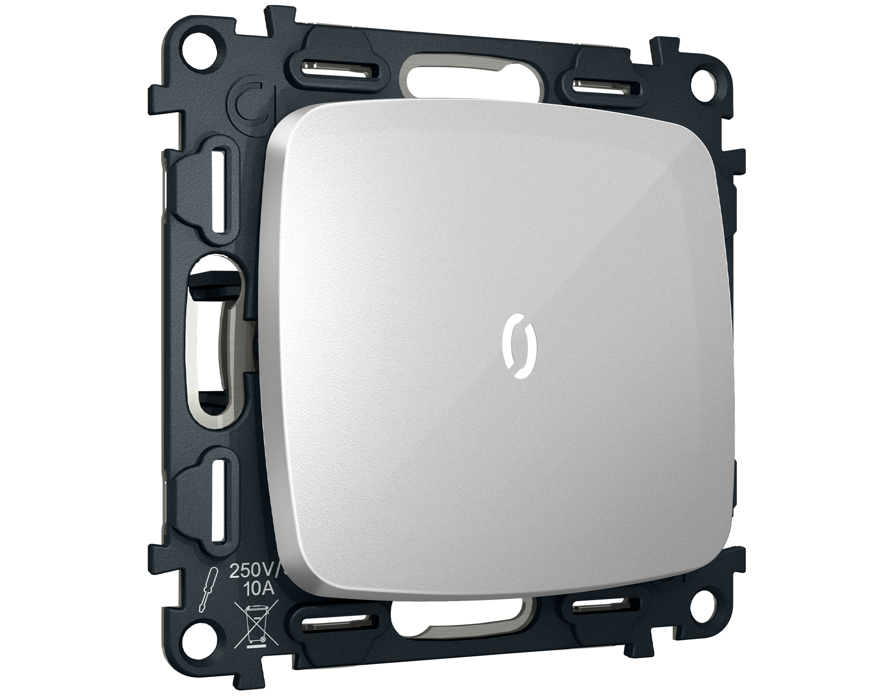 Комплект механизма 1-клавишного проходного выключателя с подсветкой 3200K OMEGA MO402035 Серебро глянец QUANT