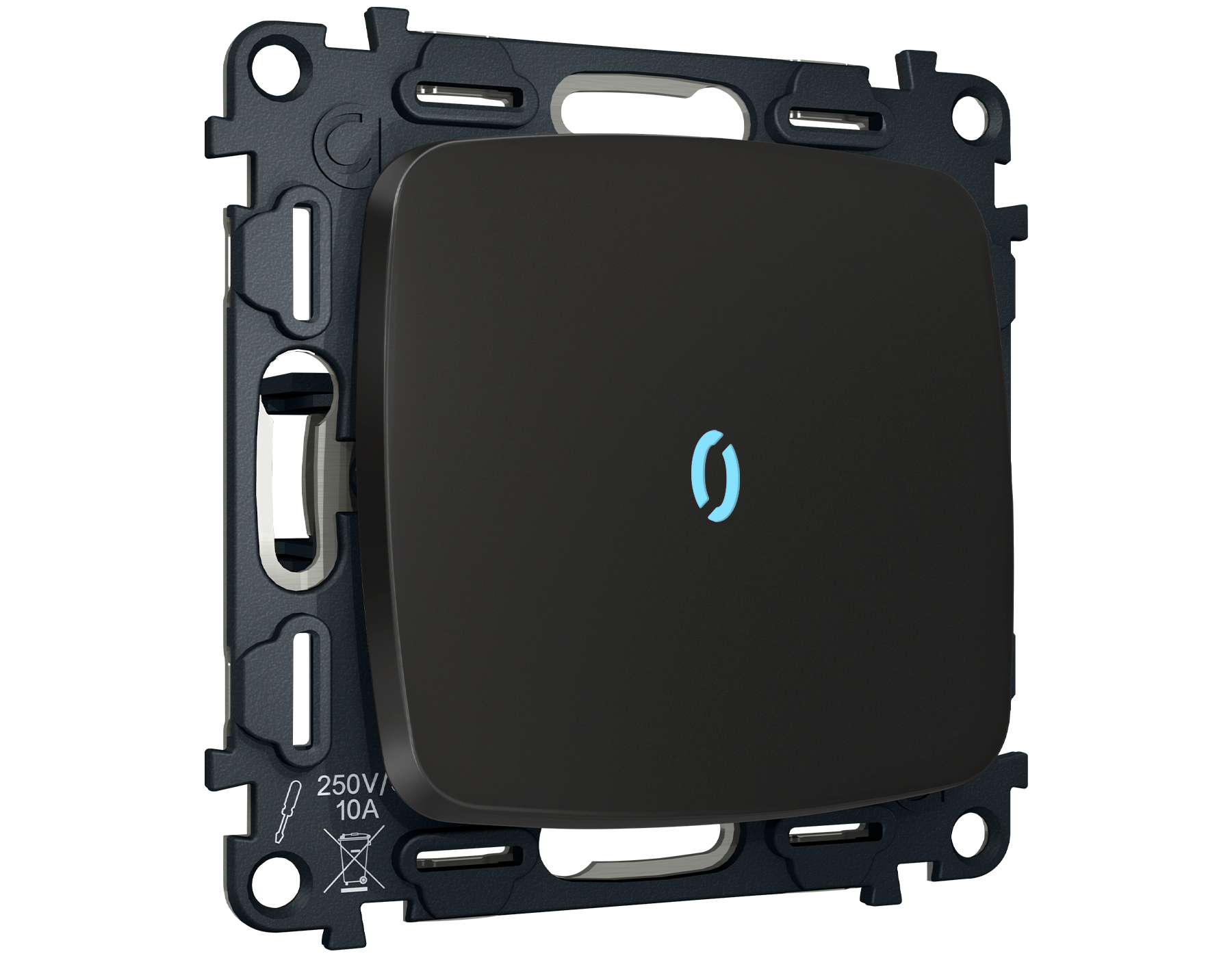 Комплект механизма 1-клавишного проходного выключателя с подсветкой 10000K OMEGA MO802040 Черный матовый QUANT