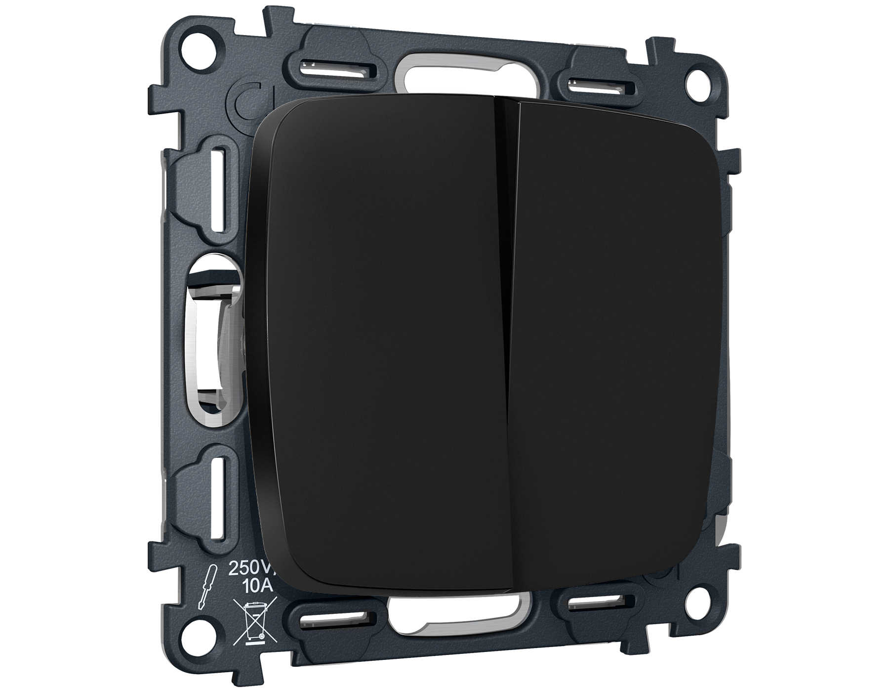 Комплект механизма 2-клавишного проходного выключателя OMEGA MO803020 Черный матовый QUANT