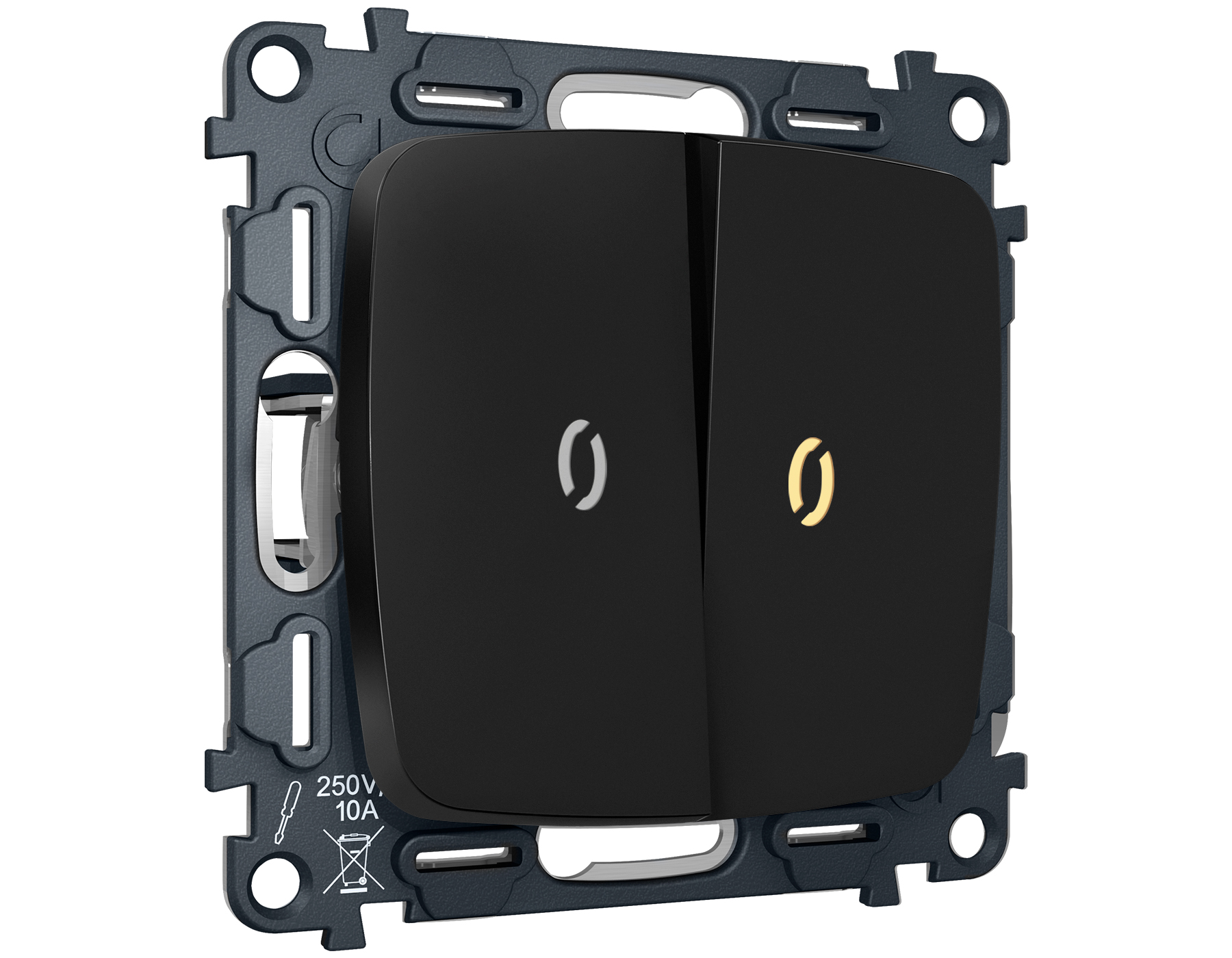 Комплект механизма 2-клавишного проходного выключателя с подсветкой 3200K OMEGA MO804030 Черный матовый QUANT