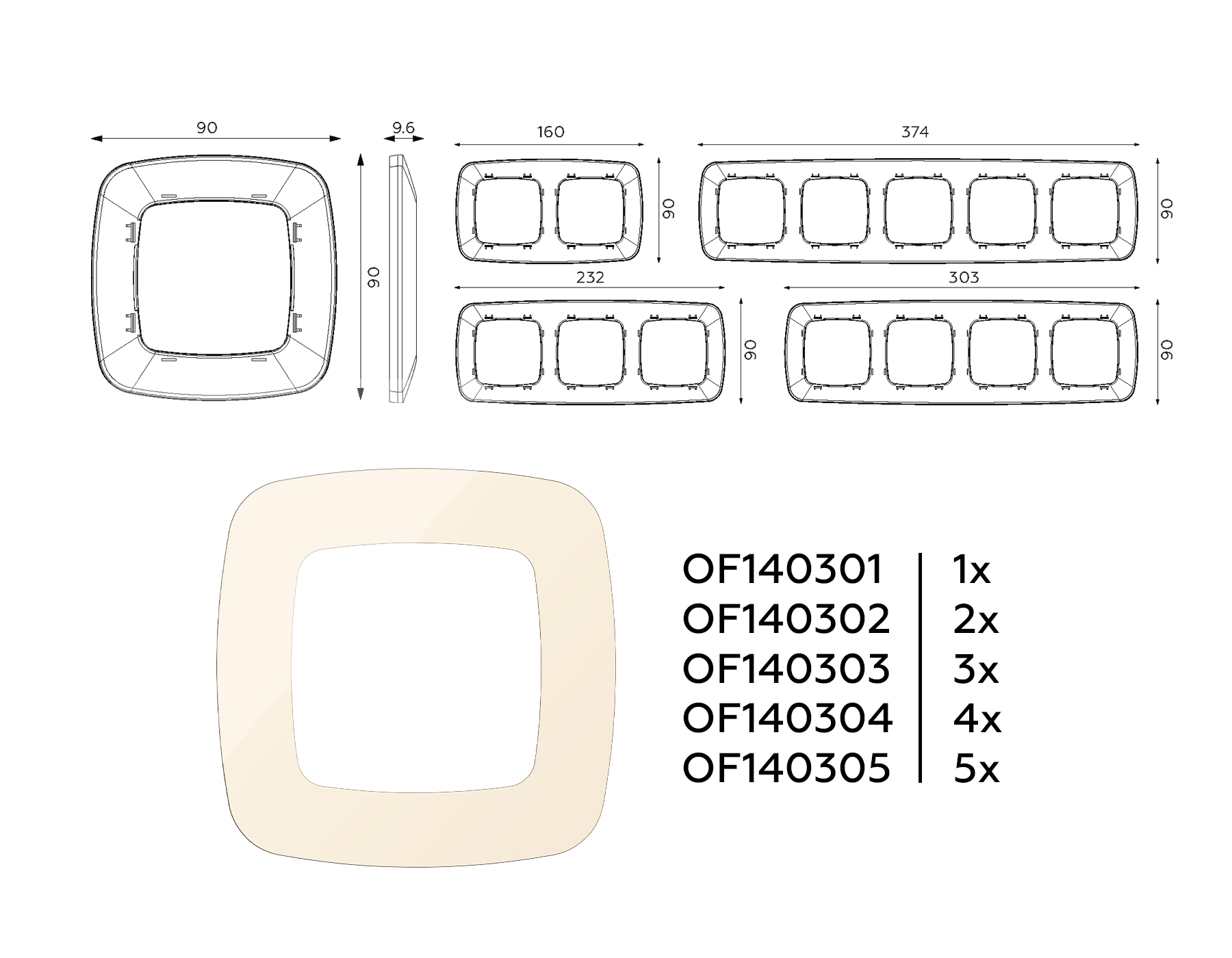 Рамка OMEGA Ecta (Бежевый глянец) 1-ая OF140301