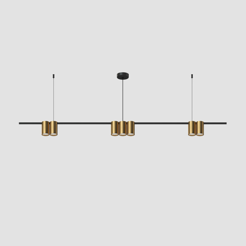 ORBIT подвесной светильник. Длина 1,5 м. Возможна регулировка по высоте. Корпус изготовлен из алюминия, эффективно отводящего тепло, и имеет матовую шероховатую поверхность. 7 плафонов под сменную лампу. Модель представлена также в цвете черный матовый.