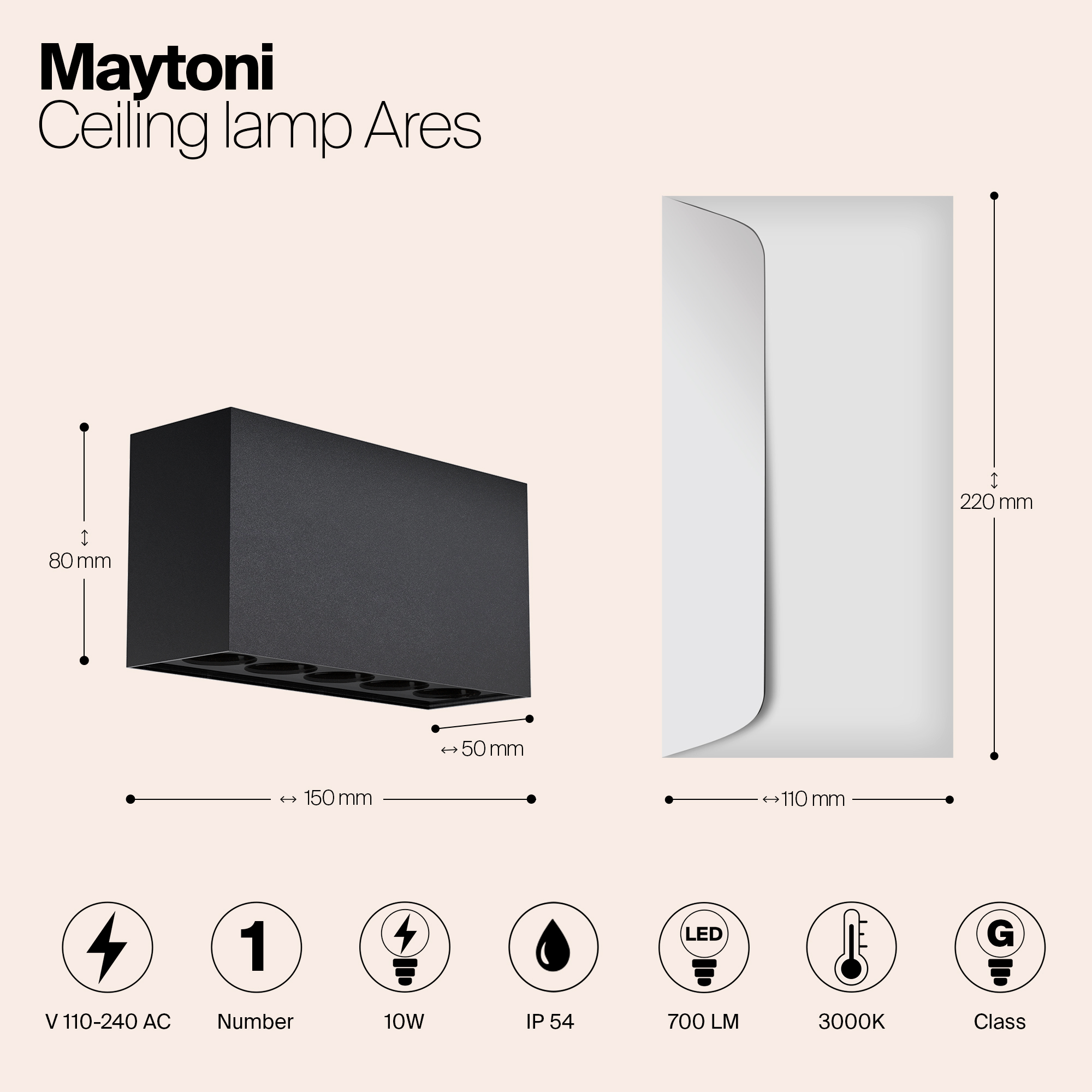 Металлический корпус. Рассеиватель из стекла. Цвет — графит. LED-источник света, цветовая температура — 3000К. Индекс цветопередачи — 80Ra. Высокая степень защиты — IP 65.