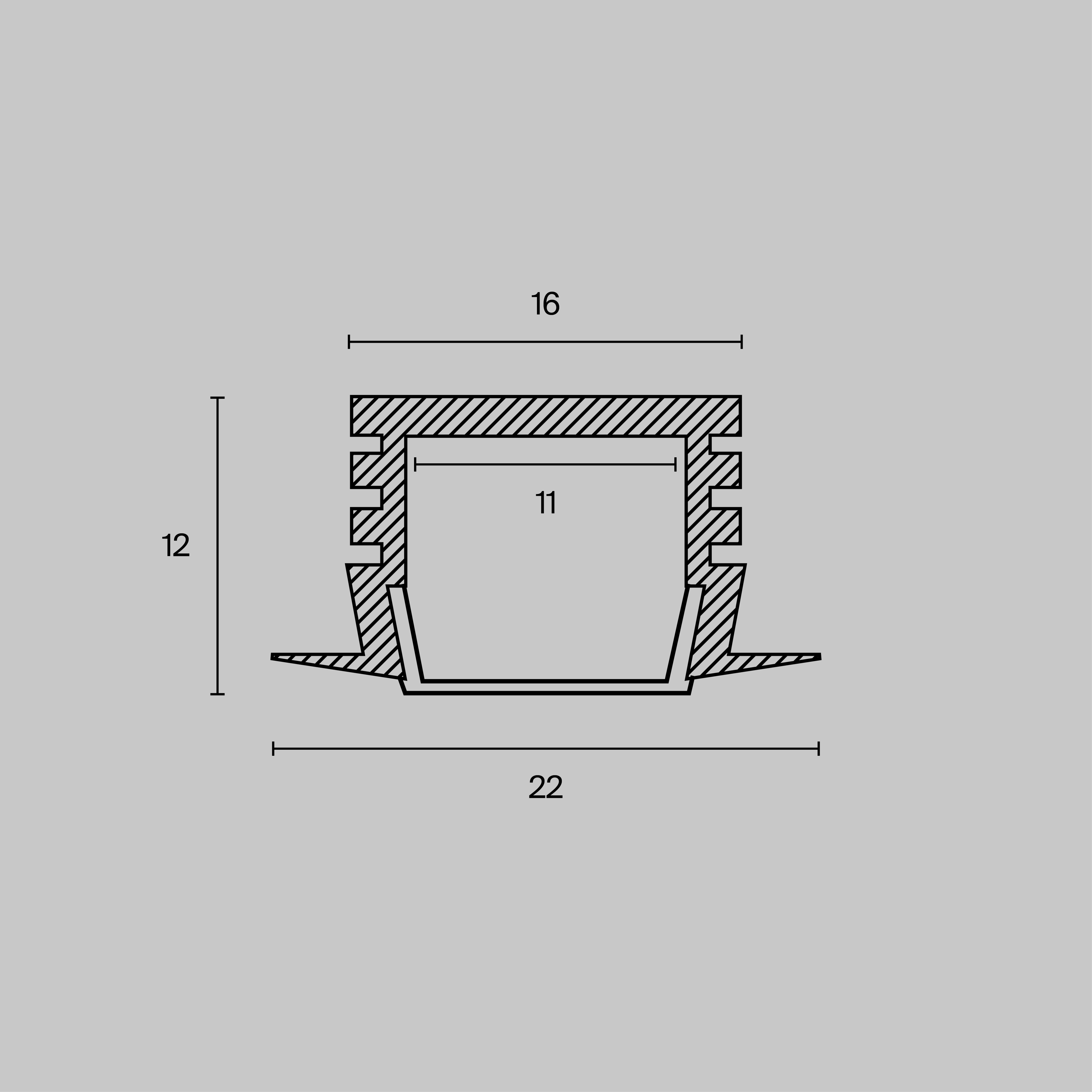 Алюминиевый профиль встраиваемый с накладным фланцем 22×12 (Серебро, 2 м), ALM006S-2M