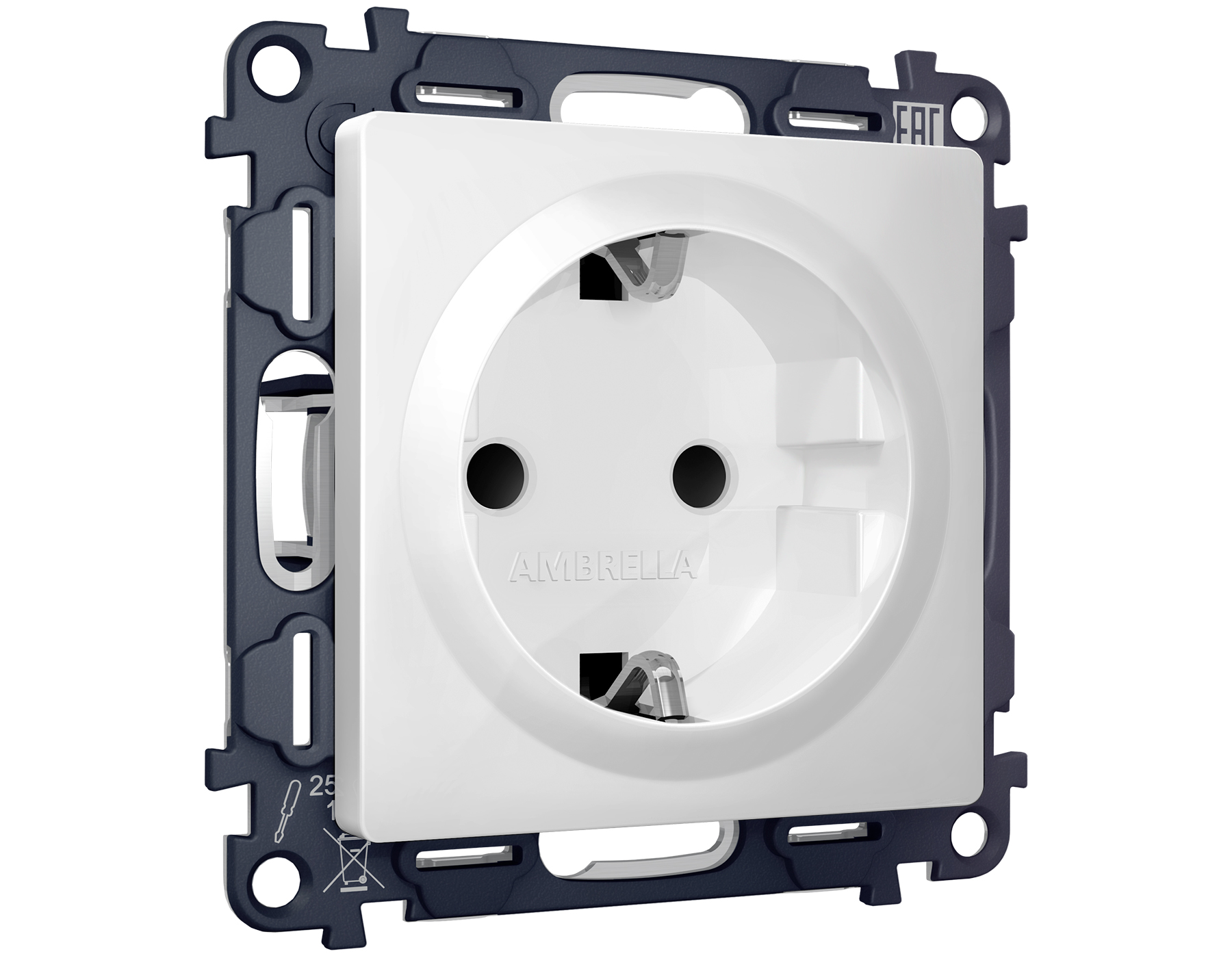 Комплект механизма электрической розетки ALFA MA127010 Белый матовый с заземлением со шторками 2P+E 16A-250V QUANT