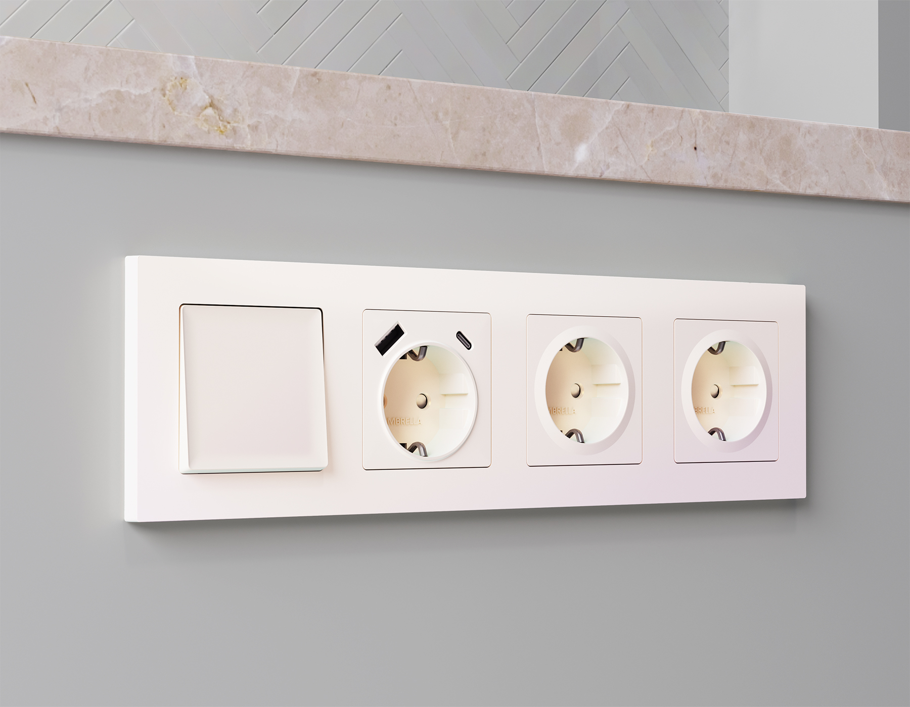 Многогранный ассортимент Ambrella Volt включает в себя механизмы, лицевые панели и рамки, а также комплекты, доступные в различных цветовых решениях. Продукция представлена в модульном исполнении, что позволяет гибко настраивать внешнийвид и функциональность. Вам будет легко заменить лицевую панель, рамку или механизм, найдя идеальное сочетание цветов.