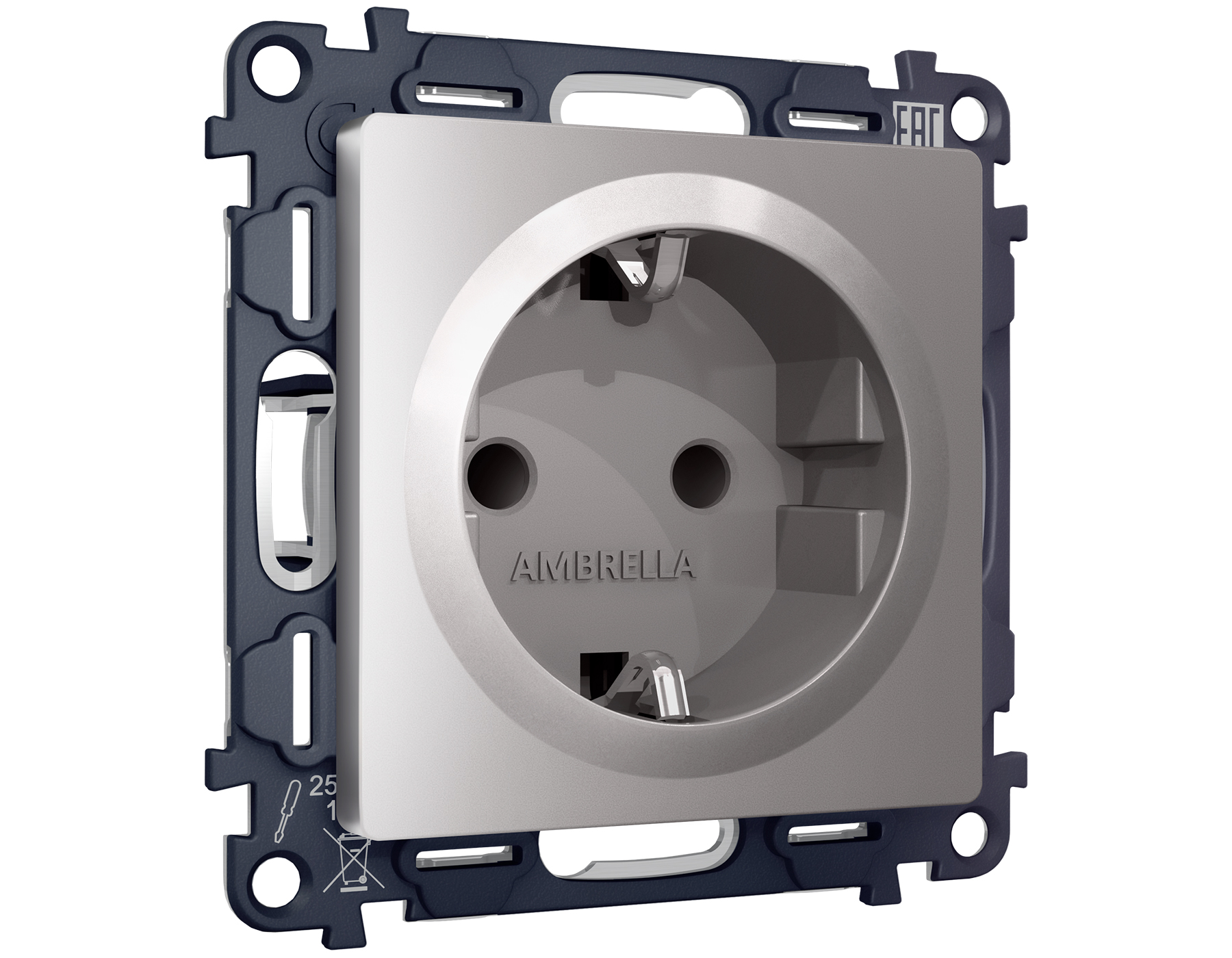 Комплект механизма электрической розетки ALFA MA507010 Сталь матовый с заземлением и шторками 2P+E 16A-250V QUANT