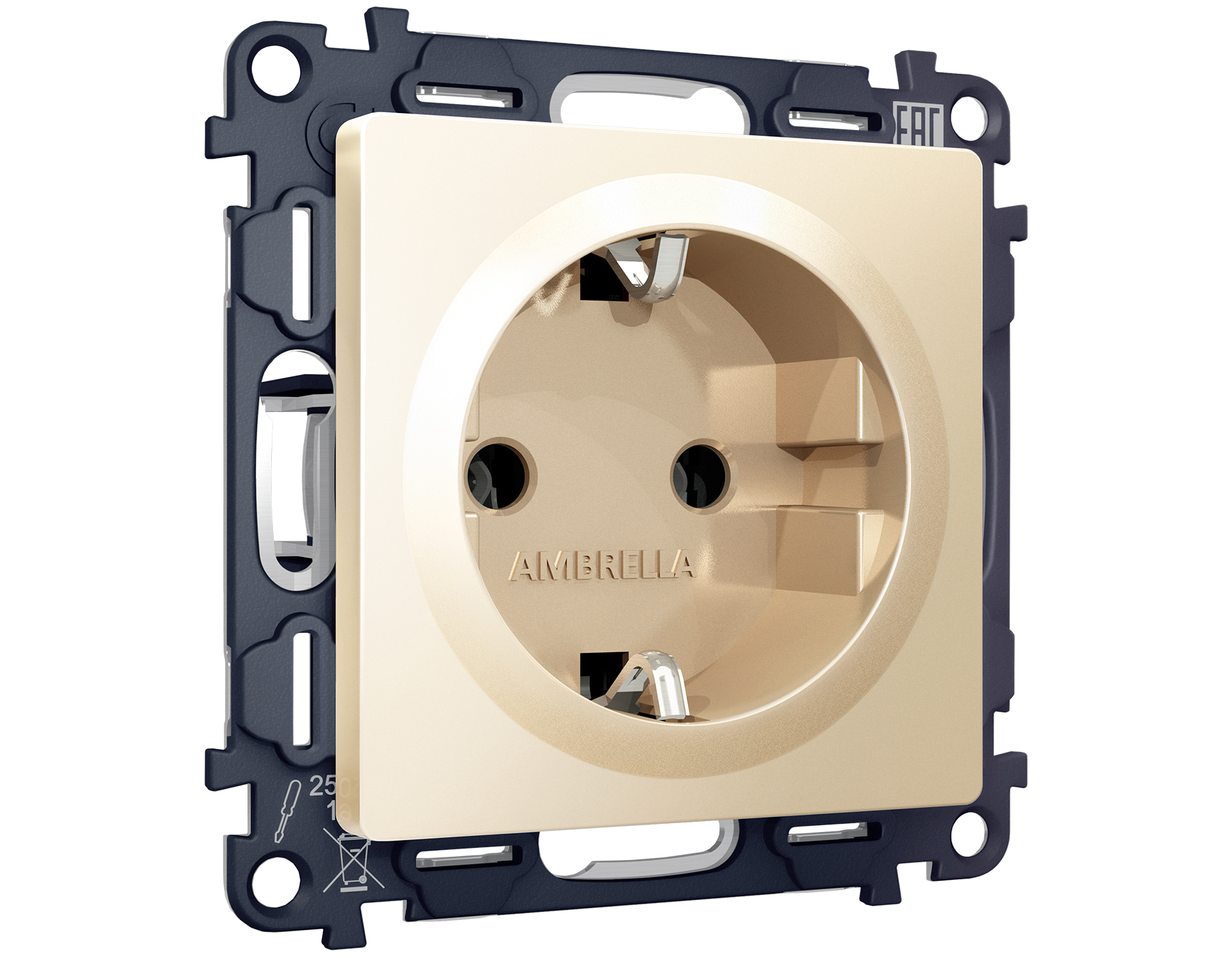 Комплект механизма электрической розетки ALFA MA606010 Шампань с заземлением на винтовых зажимах 2P+E 16A-250V QUANT