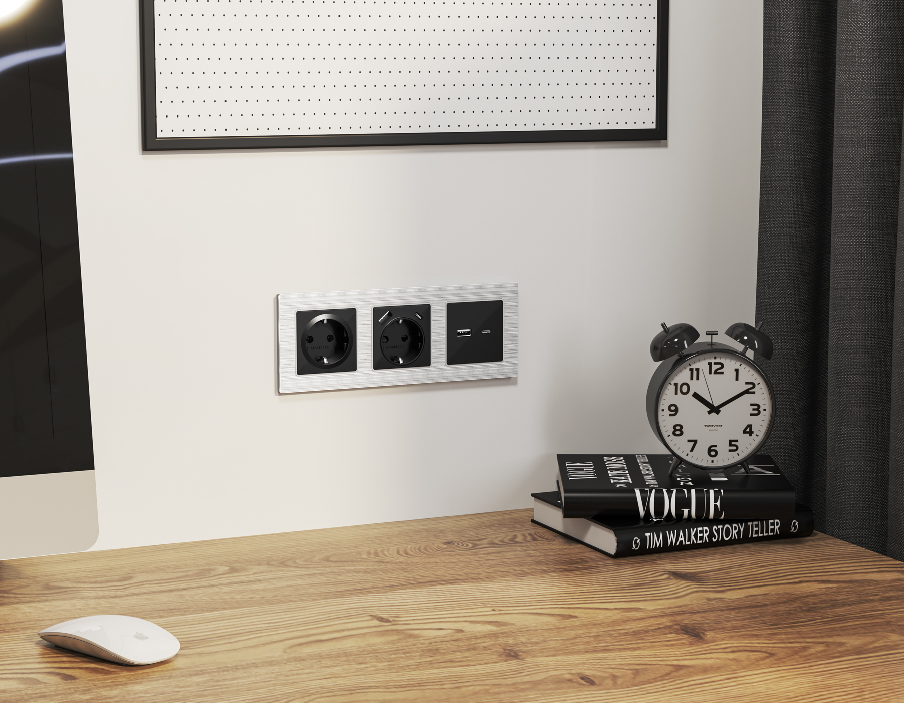 Многогранный ассортимент Ambrella Volt включает в себя механизмы, лицевые панели и рамки, а также комплекты, доступные в различных цветовых решениях. Продукция представлена в модульном исполнении, что позволяет гибко настраивать внешнийвид и функциональность. Вам будет легко заменить лицевую панель, рамку или механизм, найдя идеальное сочетание цветов.