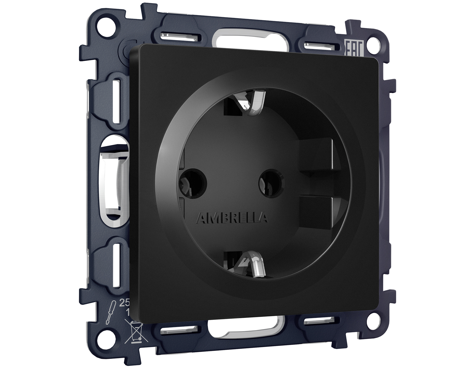 Комплект механизма электрической розетки ALFA MA806010 Черный матовый с заземлением на винтовых зажимах 2P+E 16A-250V QUANT