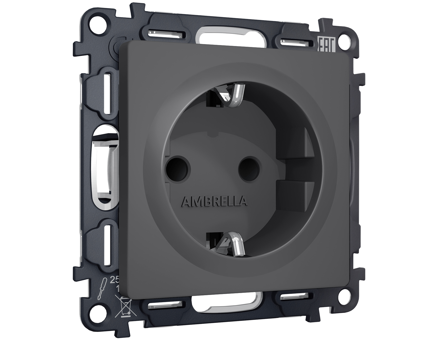 Комплект механизма электрической розетки ALFA MA907010 Графит мягкое касание с заземлением и шторками 2P+E 16A-250V QUANT