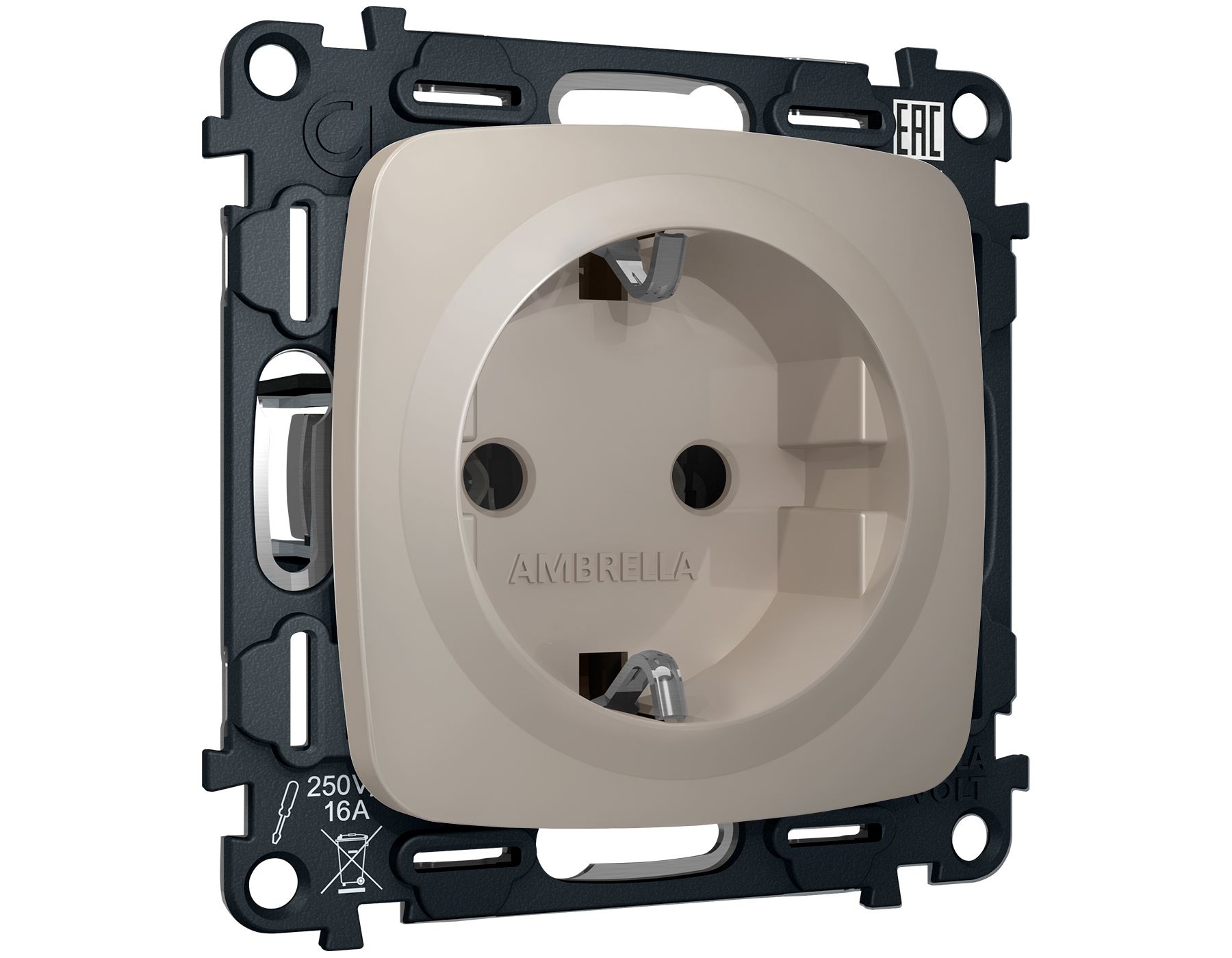 Комплект механизма электрической розетки OMEGA MO366010 Серо-бежевый матовый с заземлением на винтовых зажимах 2P+E 16A-250V QUANT