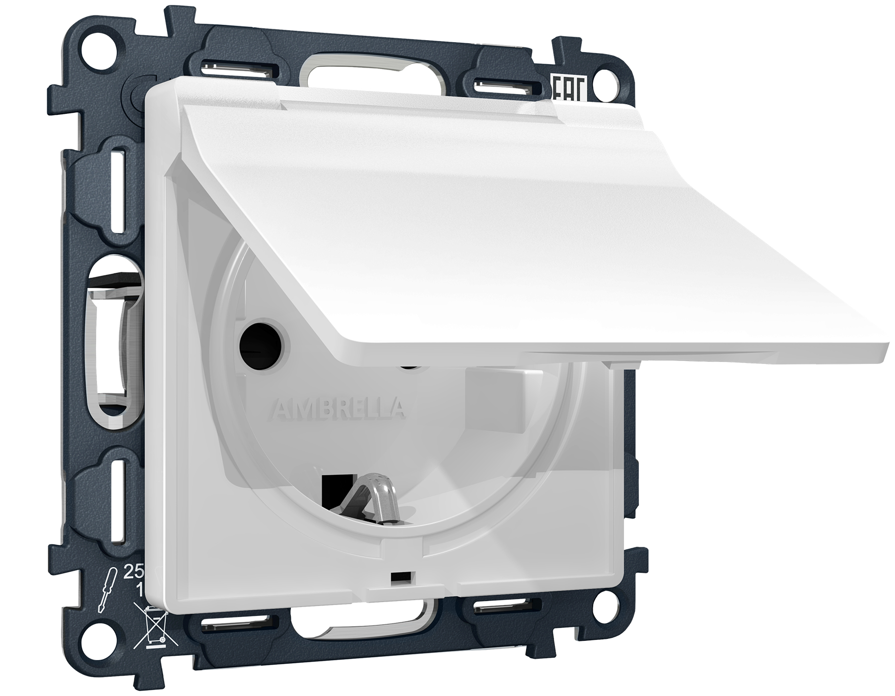 Комплект механизма электрической розетки ALFA MA128010 Белый матовый с заземлением со шторками и защитной крышкой 2P+E 16A-250V IP44 QUANT