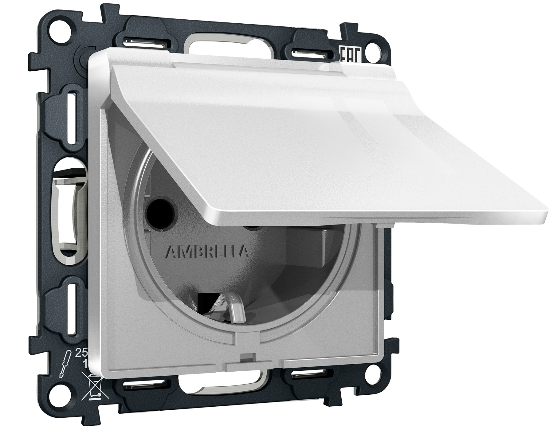 Комплект механизма электрической розетки ALFA MA408010 Серебро глянец с заземлением с шторками и защитной крышкой 2P+E 16A-250V IP44 QUANT