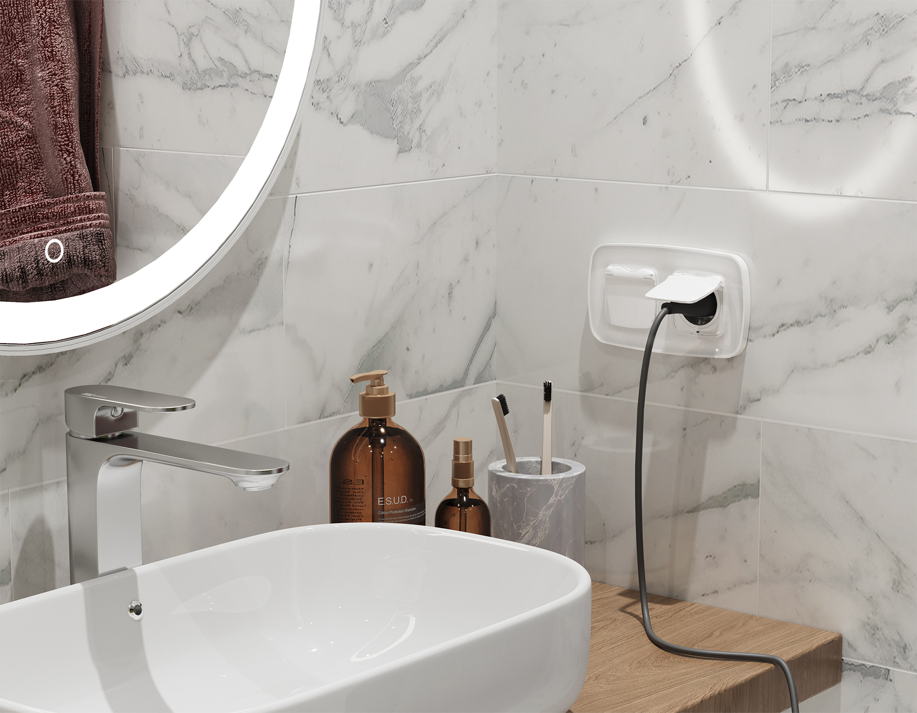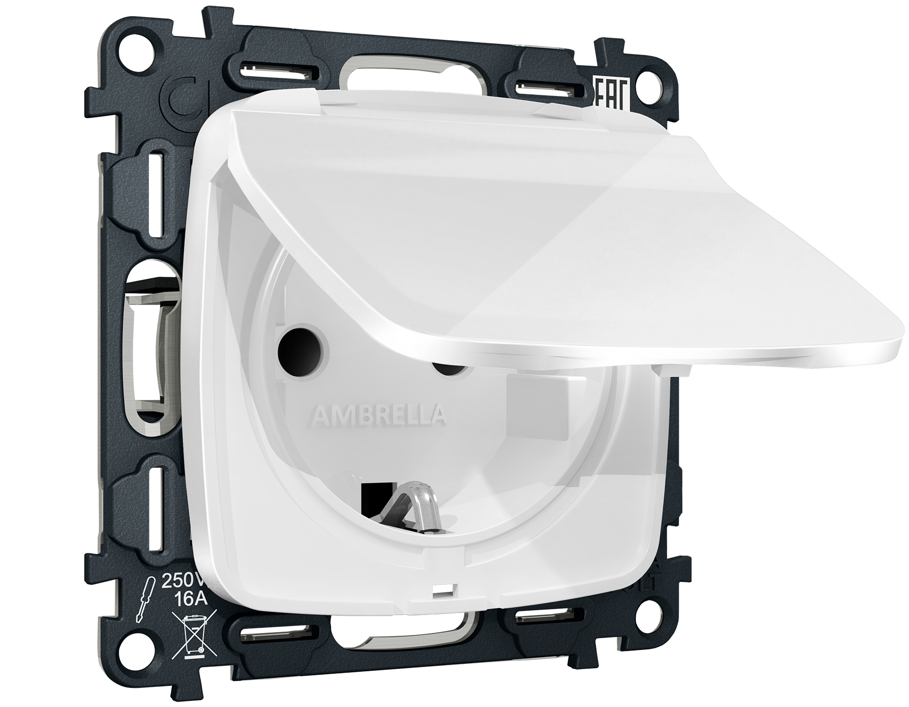 Комплект механизма электрической розетки OMEGA MO108010 Белый глянец с заземлением с шторками и защитной крышкой 2P+E 16A-250V IP44 QUANT