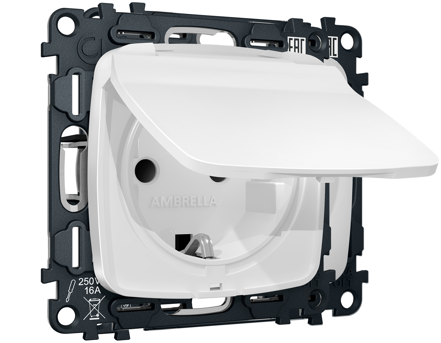 Комплект механизма электрической розетки OMEGA MO128010 Белый матовый с заземлением со шторками и защитной крышкой 2P+E 16A-250V IP44 QUANT
