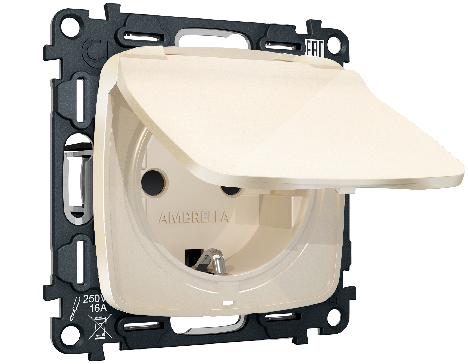 Комплект механизма электрической розетки OMEGA MO308010 Бежевый глянец с заземлением с шторками и защитной крышкой 2P+E 16A-250V IP44 QUANT