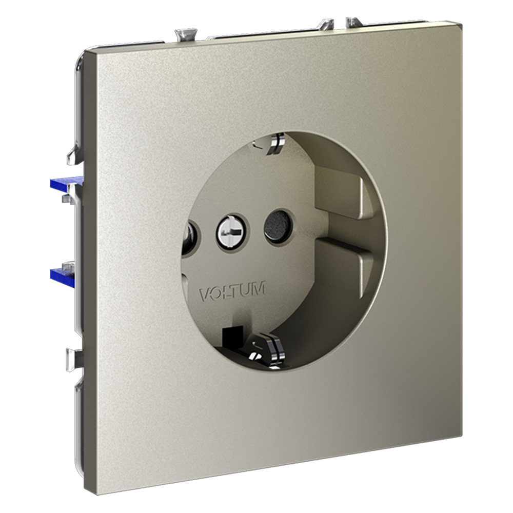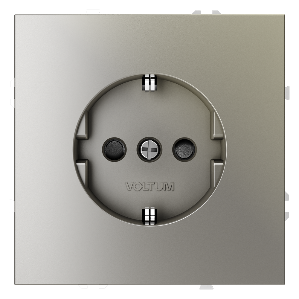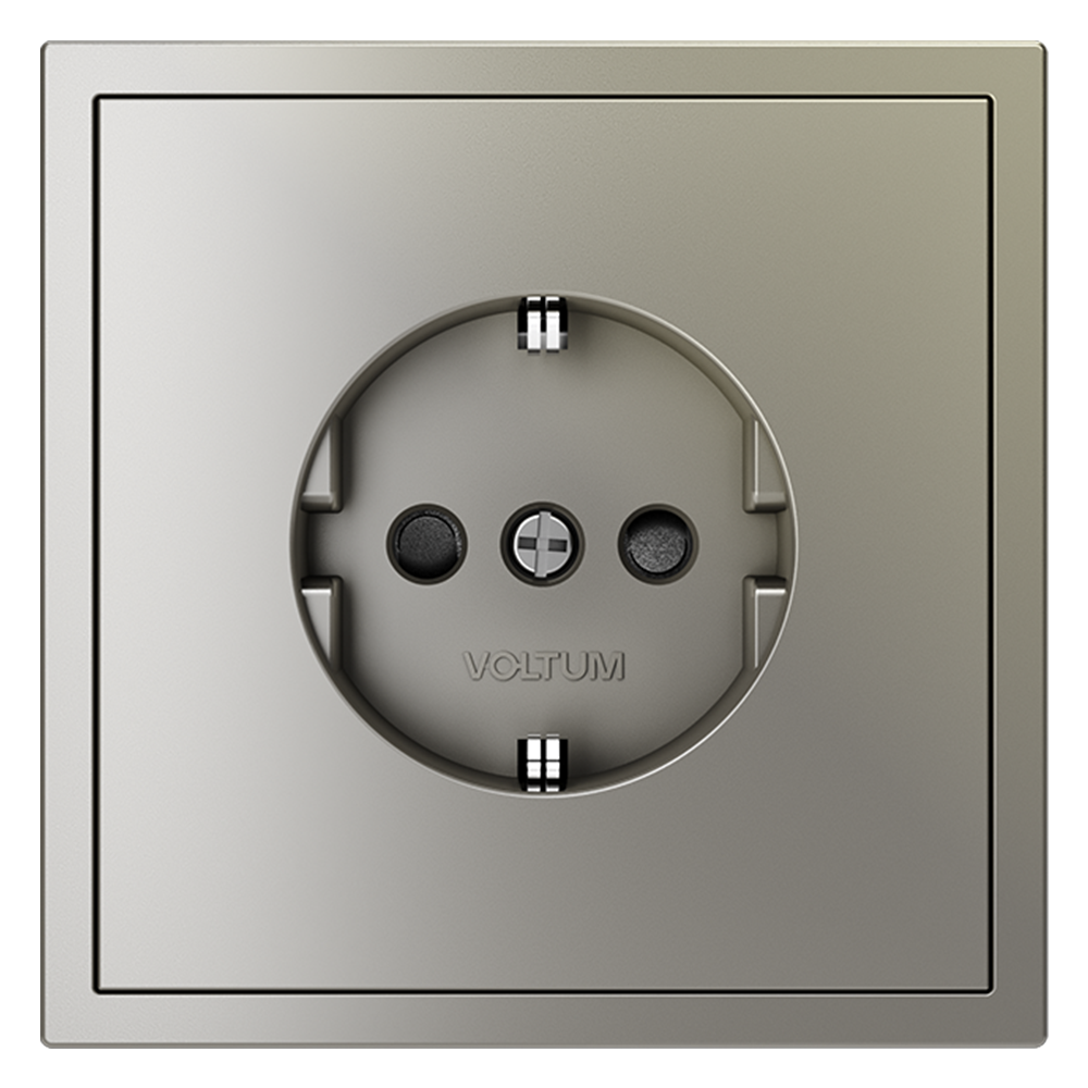 Место установки. Простота установки и демонтажа, стильный дизайн и высокое качество делают розетки Voltum идеальным выбором для дома, офиса или любых других помещений, соответствующих инструкции по эксплуатации. Корпус. Внешние накладки и корпус выполнены из поликарбоната — долговечного и безопасного материала. Он не разлагается под действием ультрафиолета и стойко выдерживает повышенные температуры, вызванные протекающими токами. Конструктивные особенности. Контактные пары выполнены из бронзы, а заземляющие контакты — с дополнительным гальваническим покрытием. Бронза обеспечивает высокую безопасность при подключении электроприборов и эффективную бесперебойную передачу тока, сохраняя передаточное усилие, что повышает срок безотказной эксплуатации. Серия S70 доступна в модульной системе: механизм, накладка и рамка поставляются отдельно.