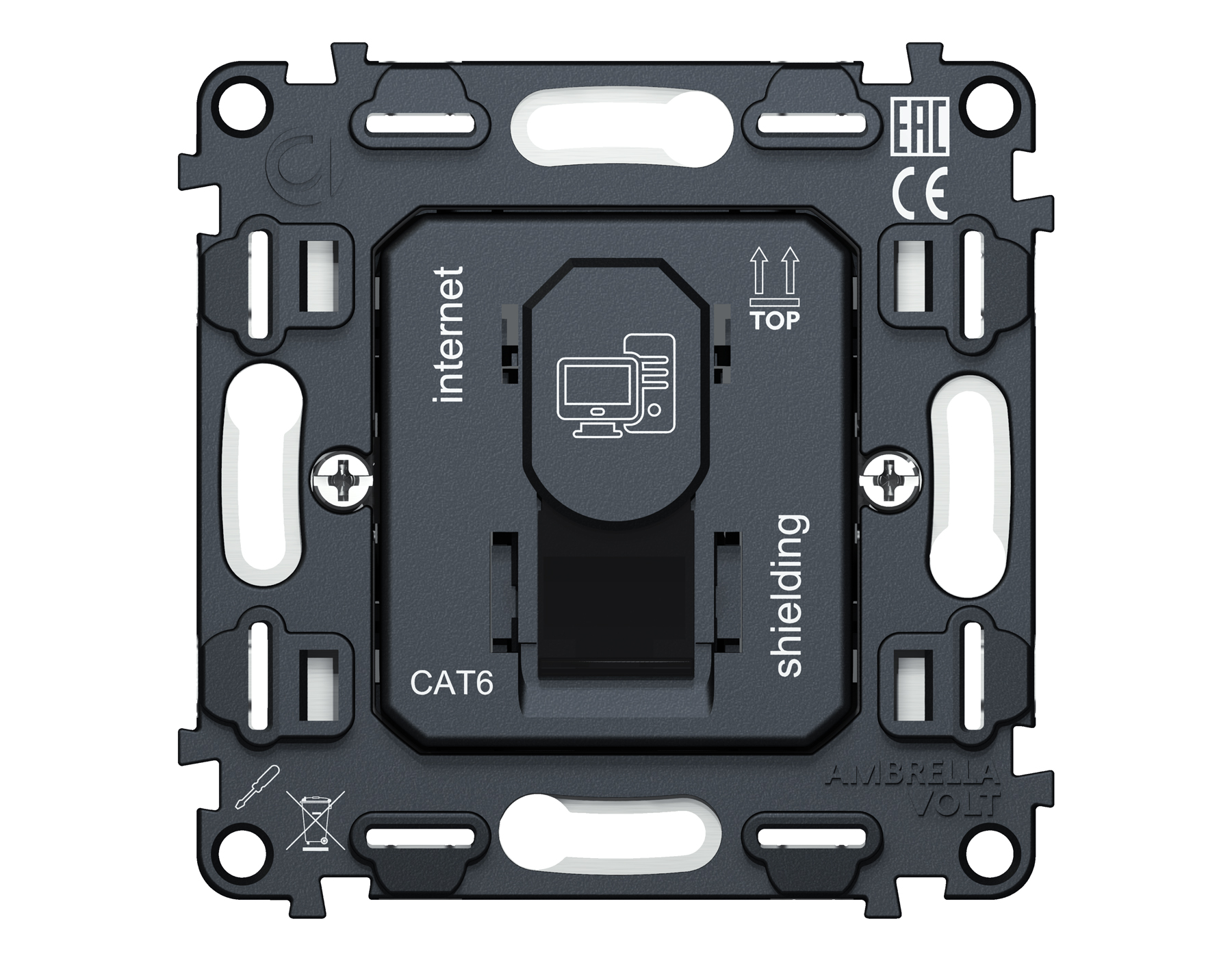 Механизм компьютерной розетки RJ-45 (8P8C) CAT6A 1000 Base-T экранированной с автоматической защитной шторкой QUANT VM185